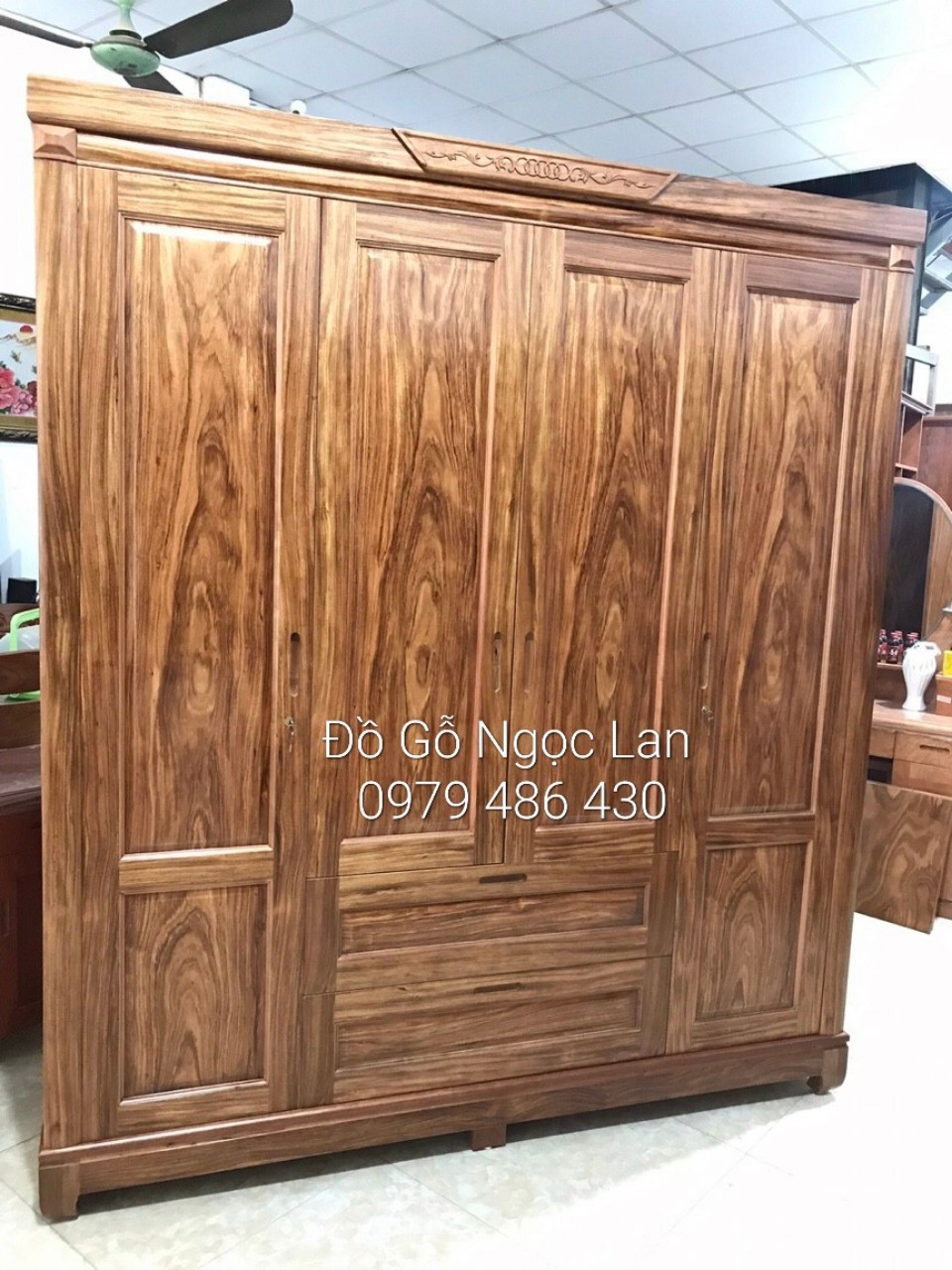 Tủ quần áo gỗ hương xám 4 cánh mẫu chơn