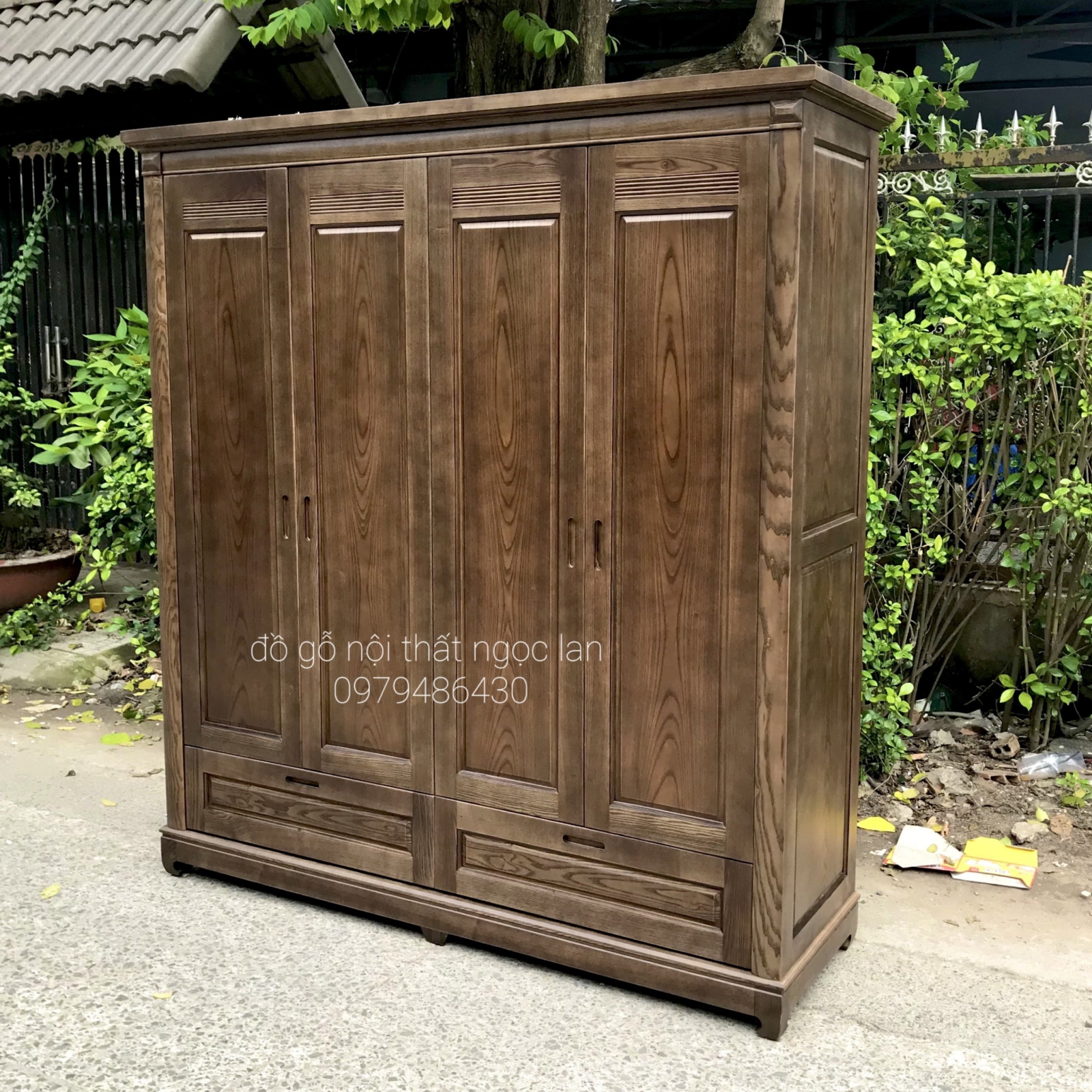 Tủ quần áo 4 cánh gỗ Sồi - lau màu óc chó