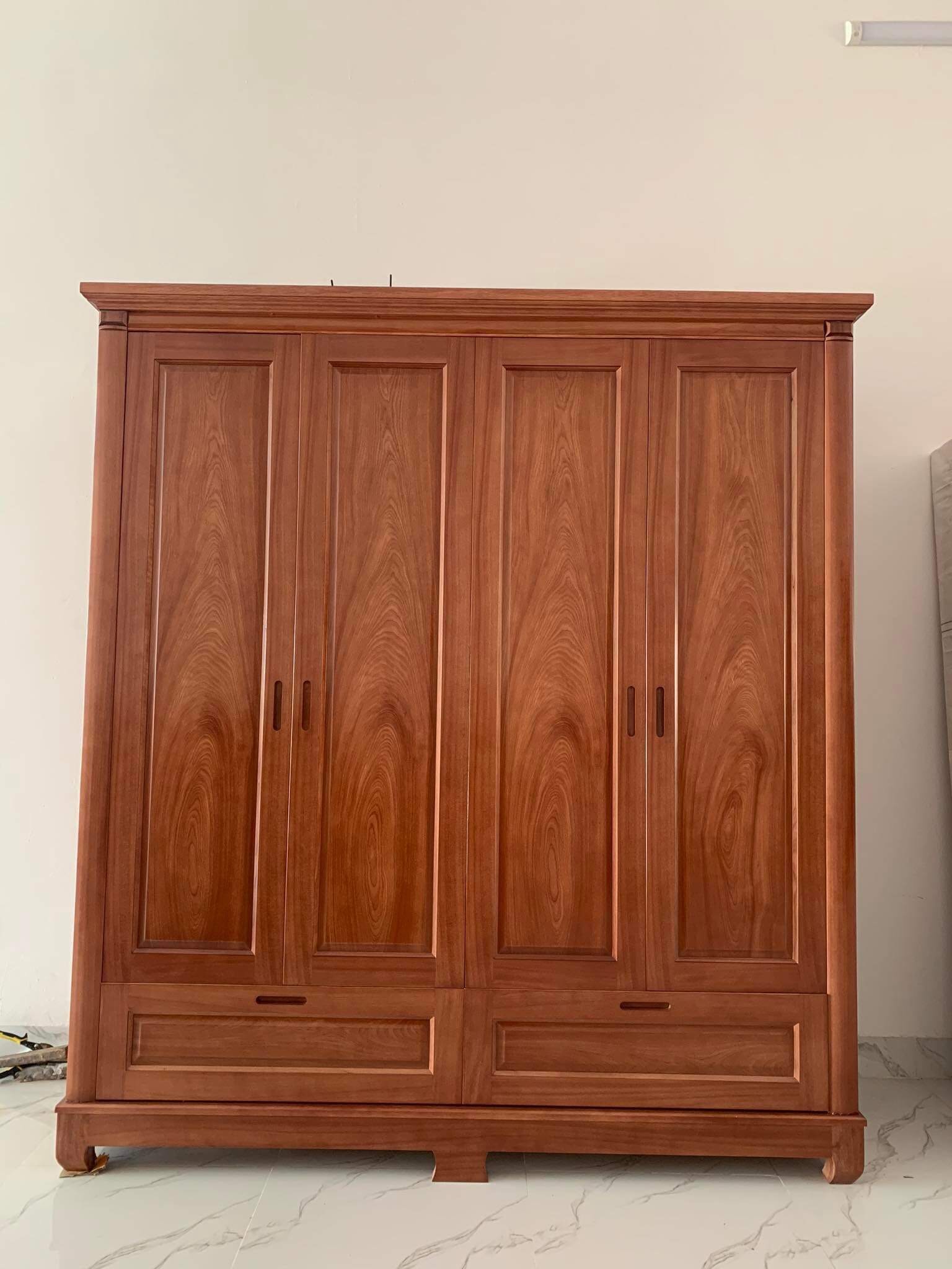 Tủ áo gỗ xoan đào 4 cánh hiện đại - mẫu chơn