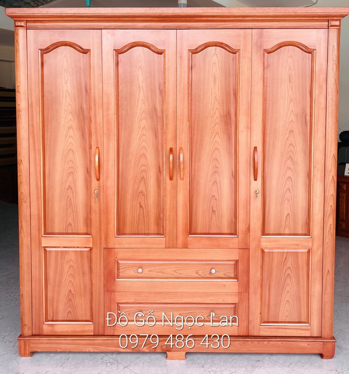 Tủ áo gỗ xoan đào 4 cánh hiện đại - mẫu chơn