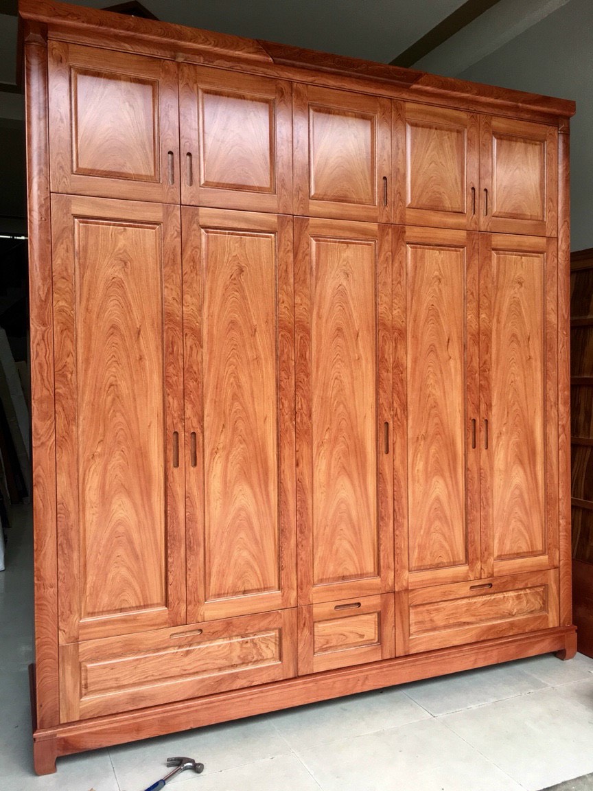 Tủ 5 cánh 2 tầng gỗ hương đá - hiện đại