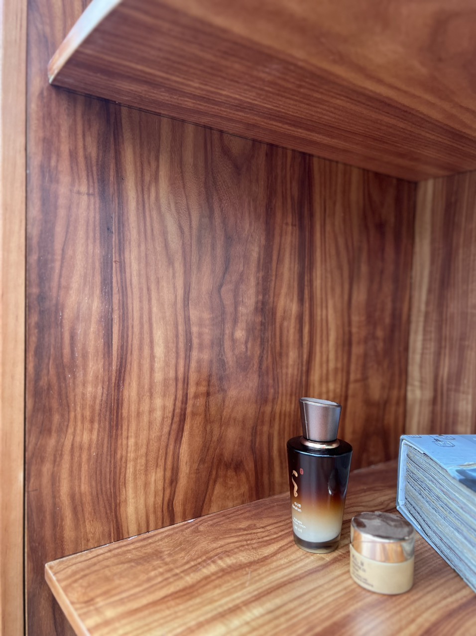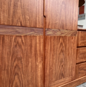 Về ngoại thất, tủ quần áo gỗ tự nhiên cao cấp được trang trí đơn giản hầu như không hề có hoa văn, họa tiết nhằm để làm nổi bật toàn bộ vẻ đẹp tự nhiên vốn có của gỗ Cẩm với những đường vân gỗ mềm mại tuyệt đẹp, uyển chuyển như những thiếu nữ đang nhảy múa khắp mặt tủ tạo cho người nhìn sự tò mò và thích thú khi ngắm nhìn. Chắc hẳn chiếc tủ quần áo gỗ tự nhiên sẽ là điểm nhấn nổi bật cho không gian phòng ngủ của bạn, giúp phòng ngủ thêm gọn gàng hơn, tạo nên vẻ đẹp sang trọng và quyến rũ đến bất ngờ.