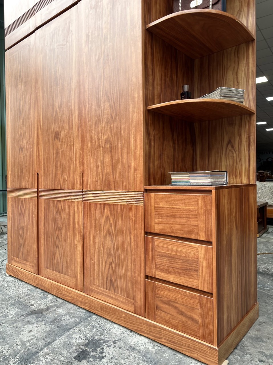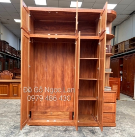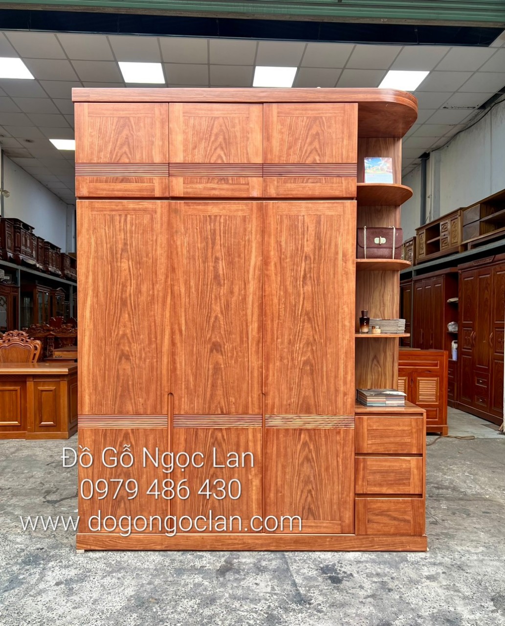 Tủ Quần Áo Gỗ Cẩm 3 Cánh 2 Tầng kèm Góc Trang Trí Vế phải