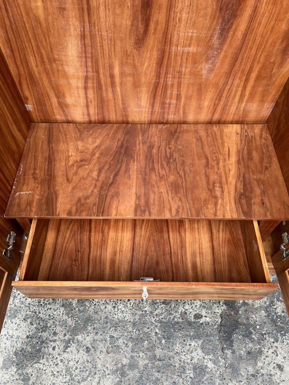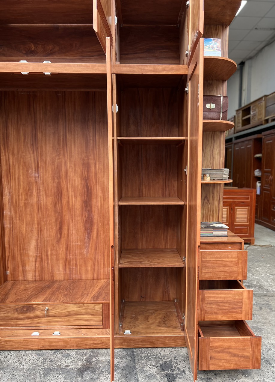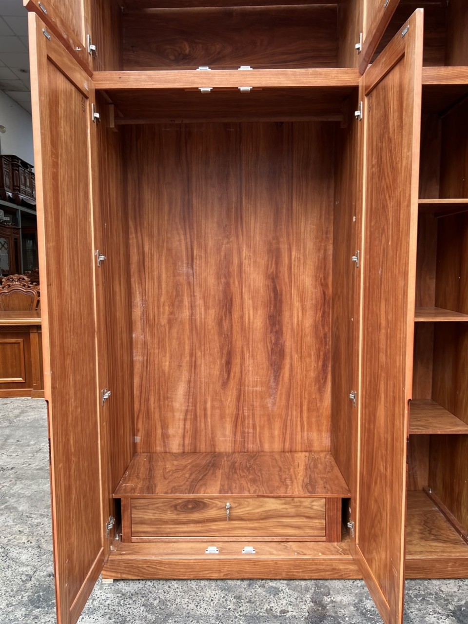 tủ quần áo gỗ cẩm 3 cánh 2 tầng kèm kệ trang trí
