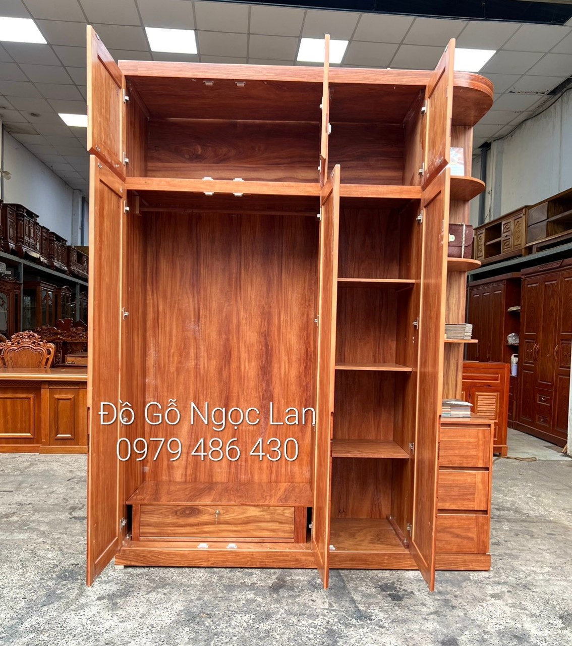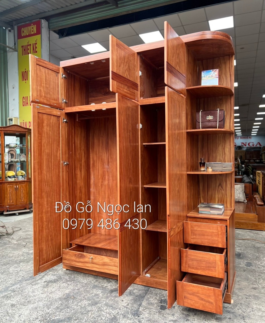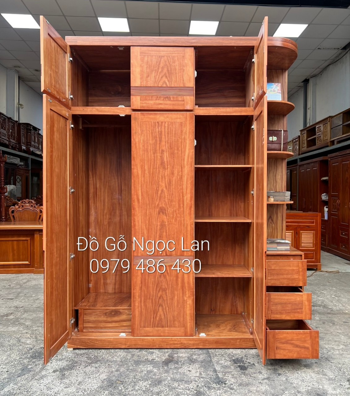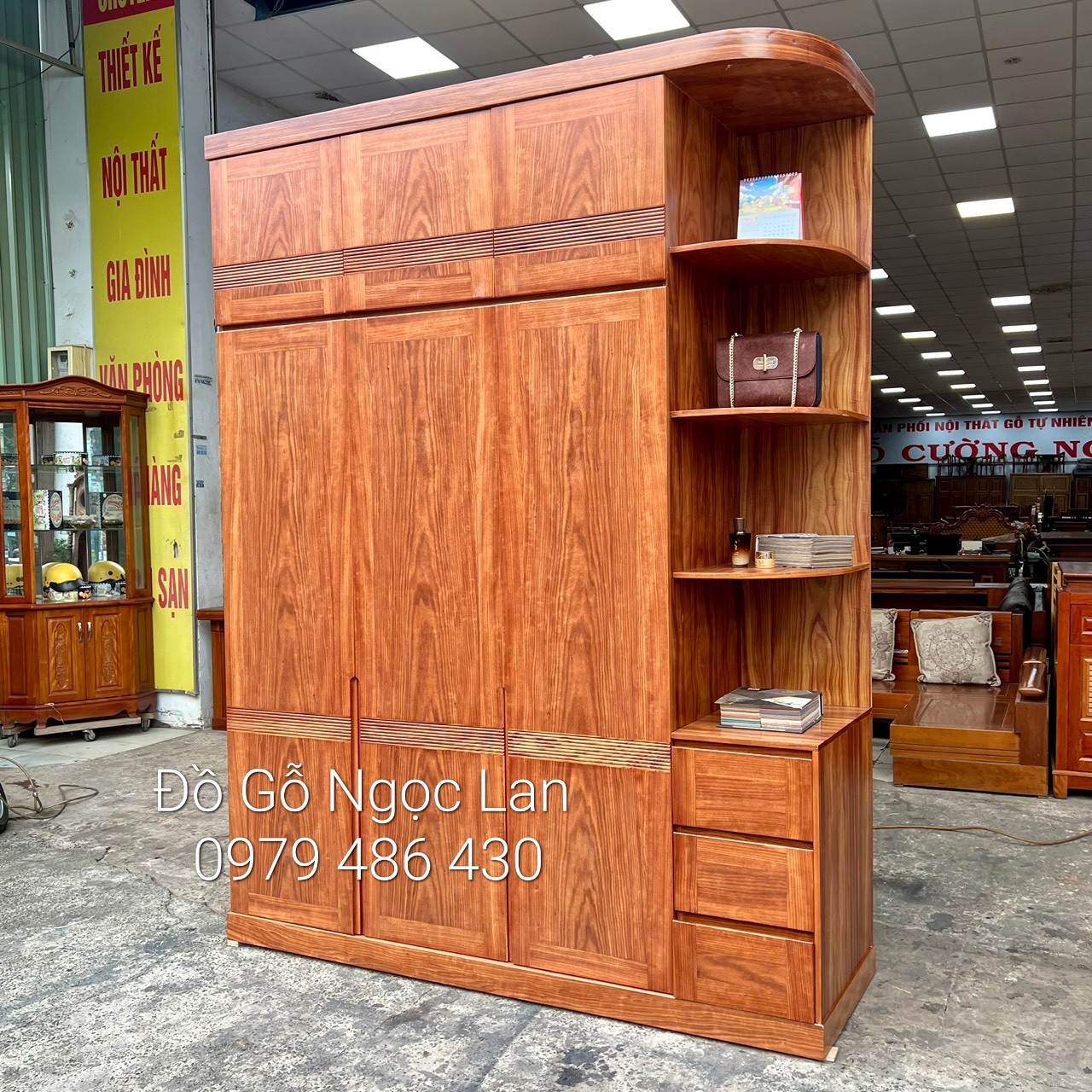 Tủ áo gỗ cẩm 3 cánh 2 tầng kèm góc trang trí - tủ quần áo gỗ tự nhiên tại Đồ Gỗ Ngọc Lan