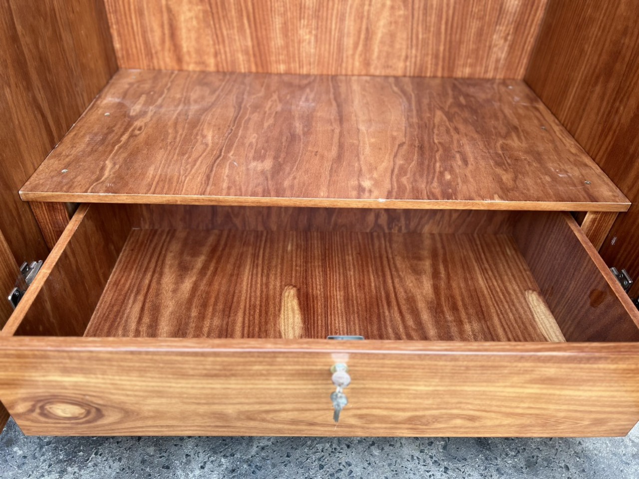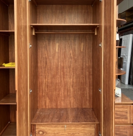 Tủ quần áo gỗ Cẩm 3 cánh có thiết kế nội thất khá tiện nghi, khung tủ chắc chắn với 2 buồng có chia ngăn (ngăn có thể tháo rời) và hộc tủ cho đồ dùng cá nhân (tay cầm sẽ được lắp vào sau) giúp gia chủ có thể linh hoạt hơn trong việc sắp xếp không gian bên trong tủ để thuận tiện nhất khi treo hay đặt nhiều quần áo