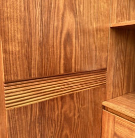 Về ngoại thất, tủ quần áo gỗ tự nhiên cao cấp được trang trí đơn giản hầu như không hề có hoa văn, họa tiết nhằm để làm nổi bật toàn bộ vẻ đẹp tự nhiên vốn có của gỗ Cẩm với những đường vân gỗ mềm mại tuyệt đẹp, uyển chuyển như những thiếu nữ đang nhảy múa khắp mặt tủ tạo cho người nhìn sự tò mò và thích thú khi ngắm nhìn. Chắc hẳn chiếc tủ quần áo gỗ tự nhiên sẽ là điểm nhấn nổi bật cho không gian phòng ngủ của bạn, giúp phòng ngủ thêm gọn gàng hơn, tạo nên vẻ đẹp sang trọng và quyến rũ đến bất ngờ.