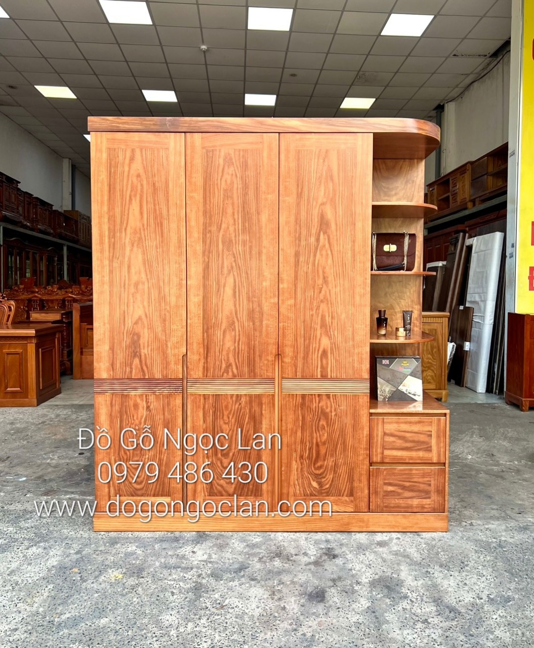Tủ áo gỗ cẩm 3 cánh kèm góc trang trí - tủ quần áo gỗ tự nhiên tại Đồ Gỗ Ngọc Lan