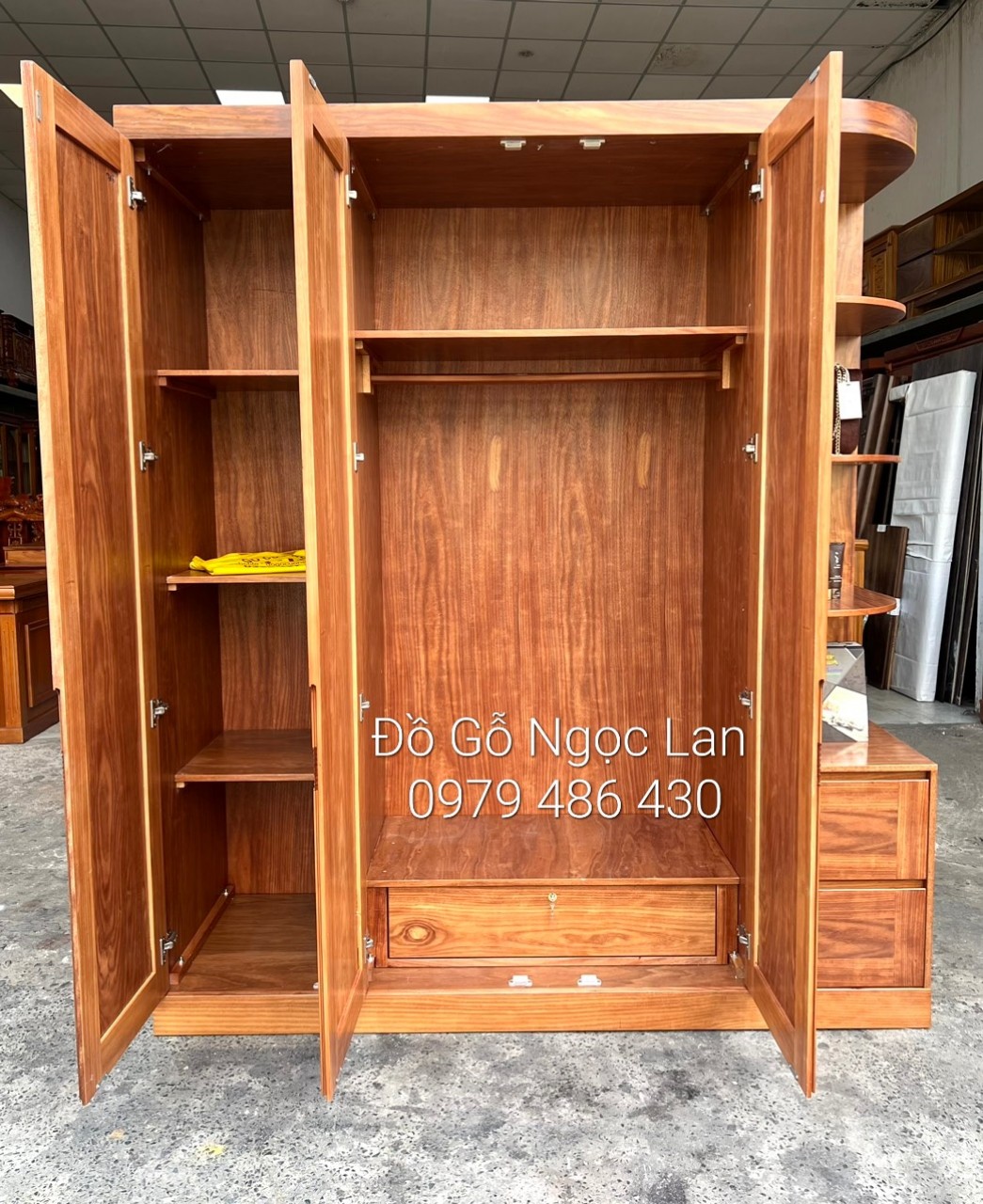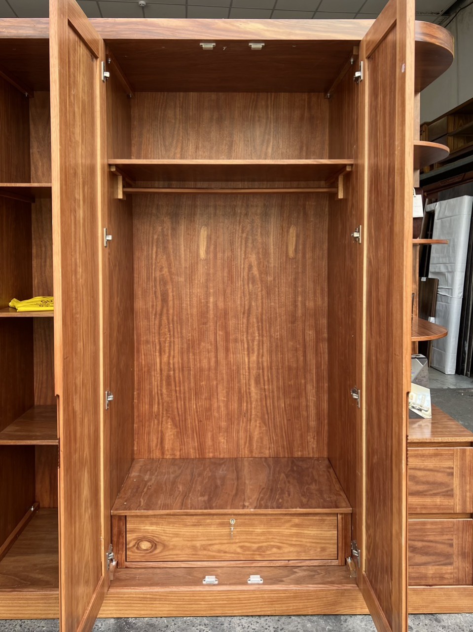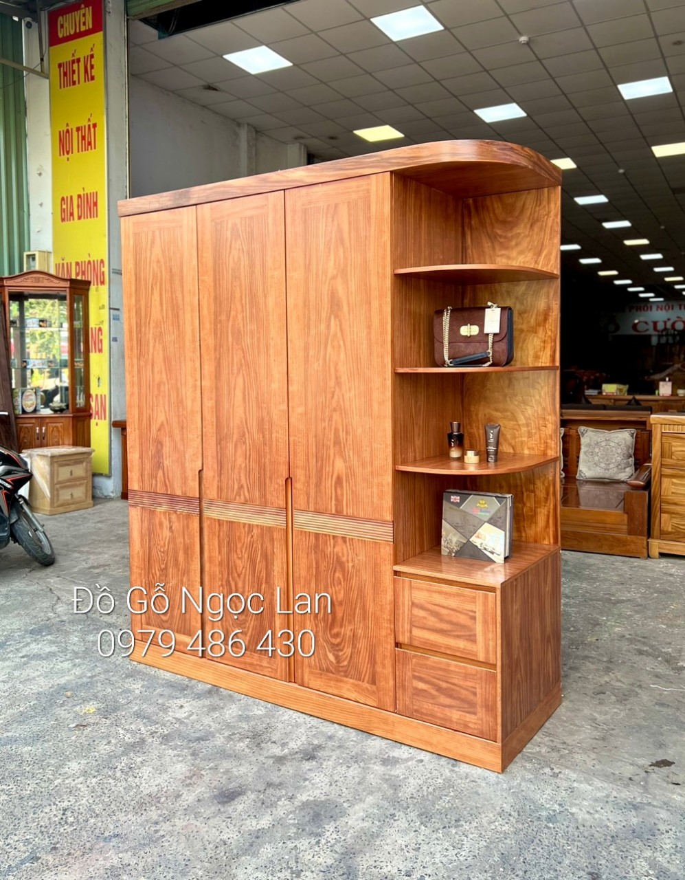 tủ quần áo gỗ cẩm 3 cánh kèm kệ trang trí