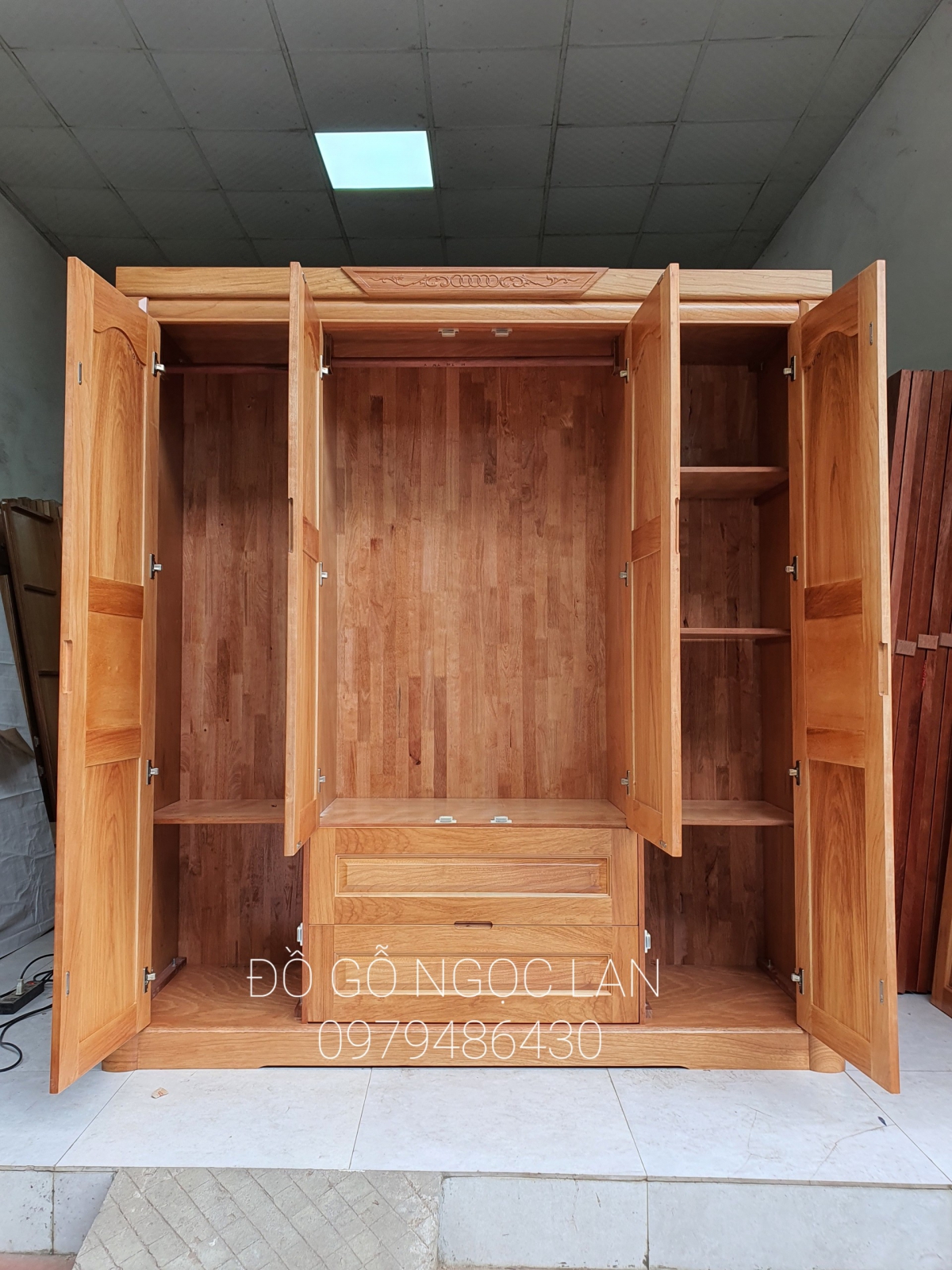 Tủ quần áo gỗ Gõ 4 cánh hiện đại - đai vòm