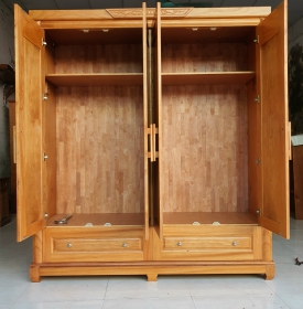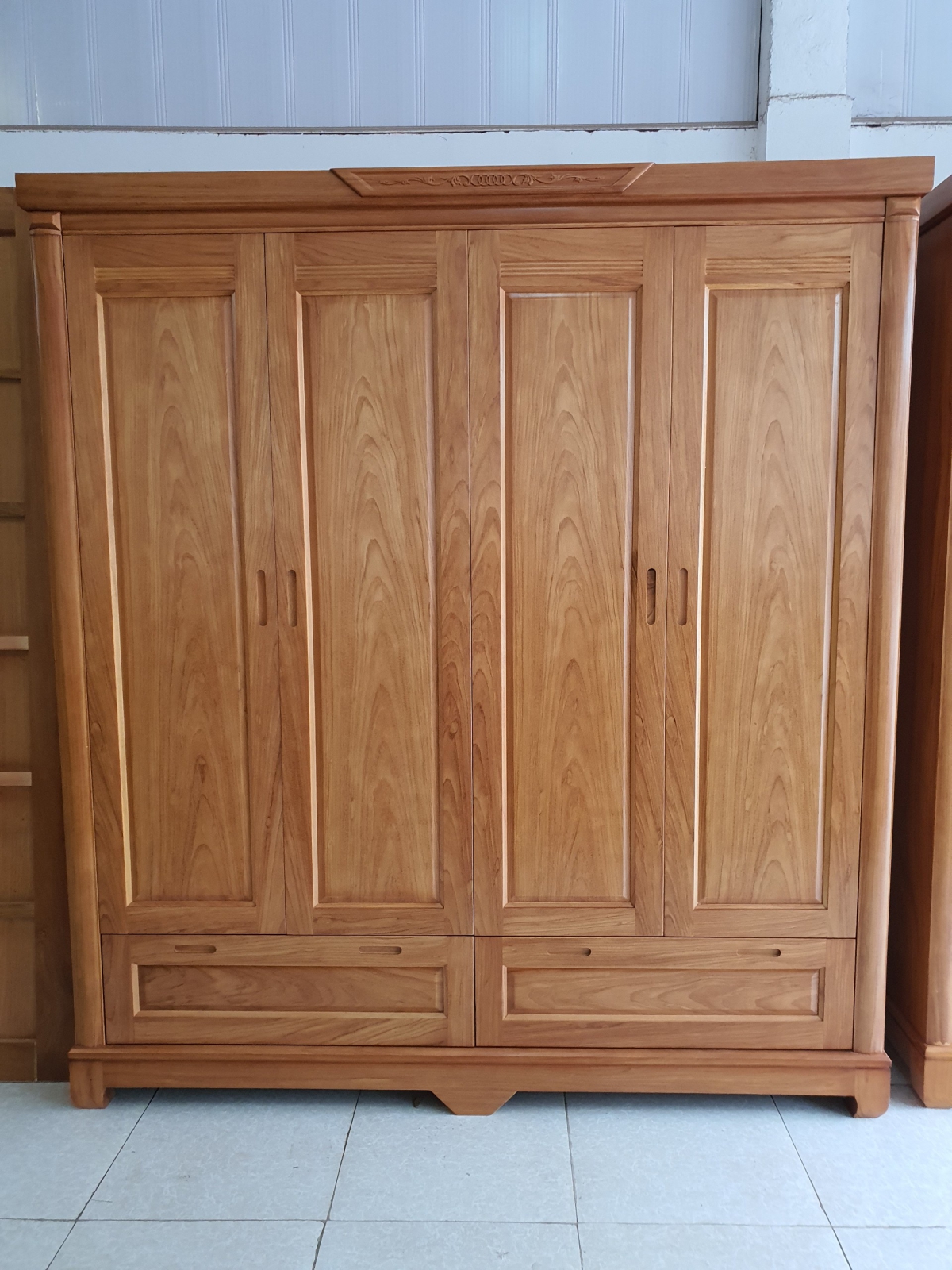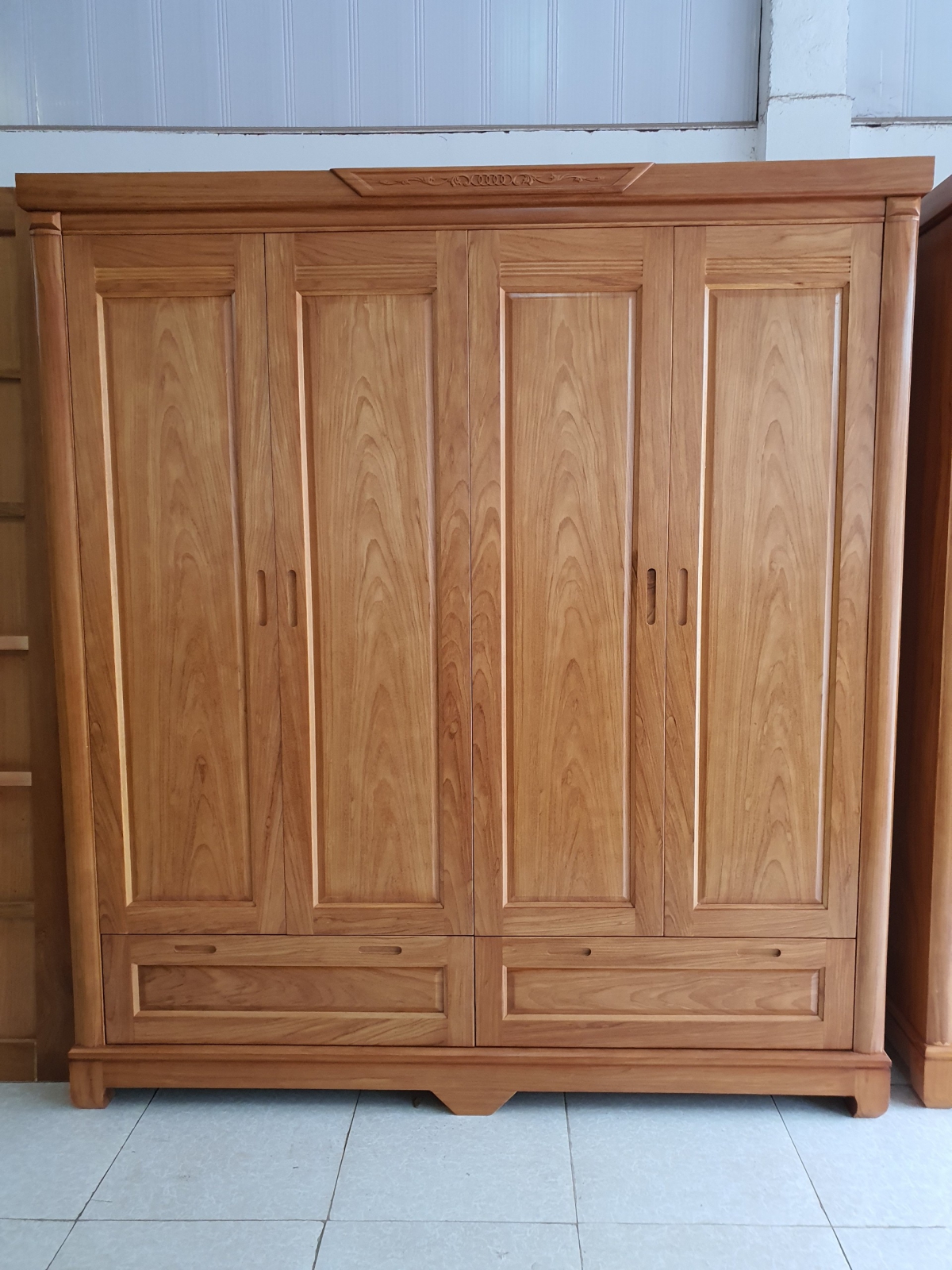 Tủ quần áo gỗ gõ 4 cánh - mẫu hiện đại