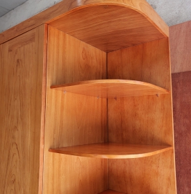Tủ quần áo gỗ gõ đỏ 4 cánh kèm góc trang trí có thiết kế nội thất khá tiện nghi, khung tủ chắc chắn với 2 buồng có chia ngăn (ngăn có thể tháo rời) và hộc tủ cho đồ dùng cá nhân (tay cầm sẽ được lắp vào sau) giúp gia chủ có thể linh hoạt hơn trong việc sắp xếp không gian bên trong tủ để thuận tiện nhất khi treo hay đặt nhiều quần áo