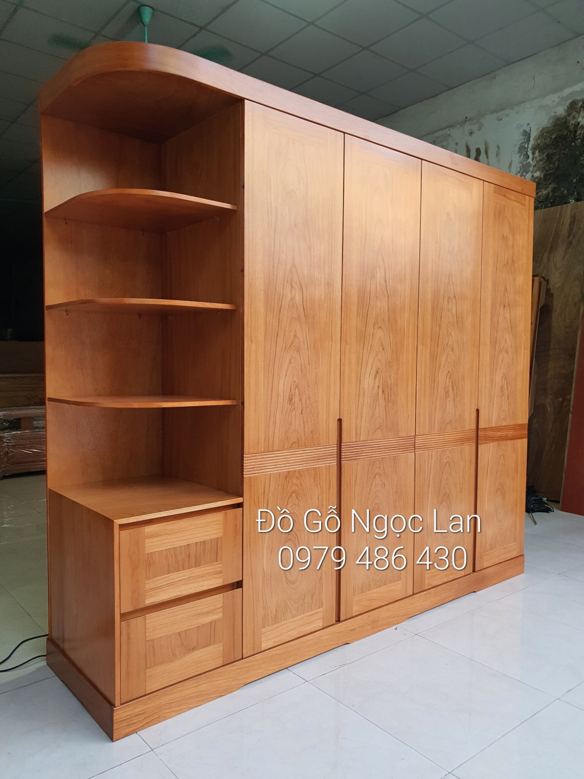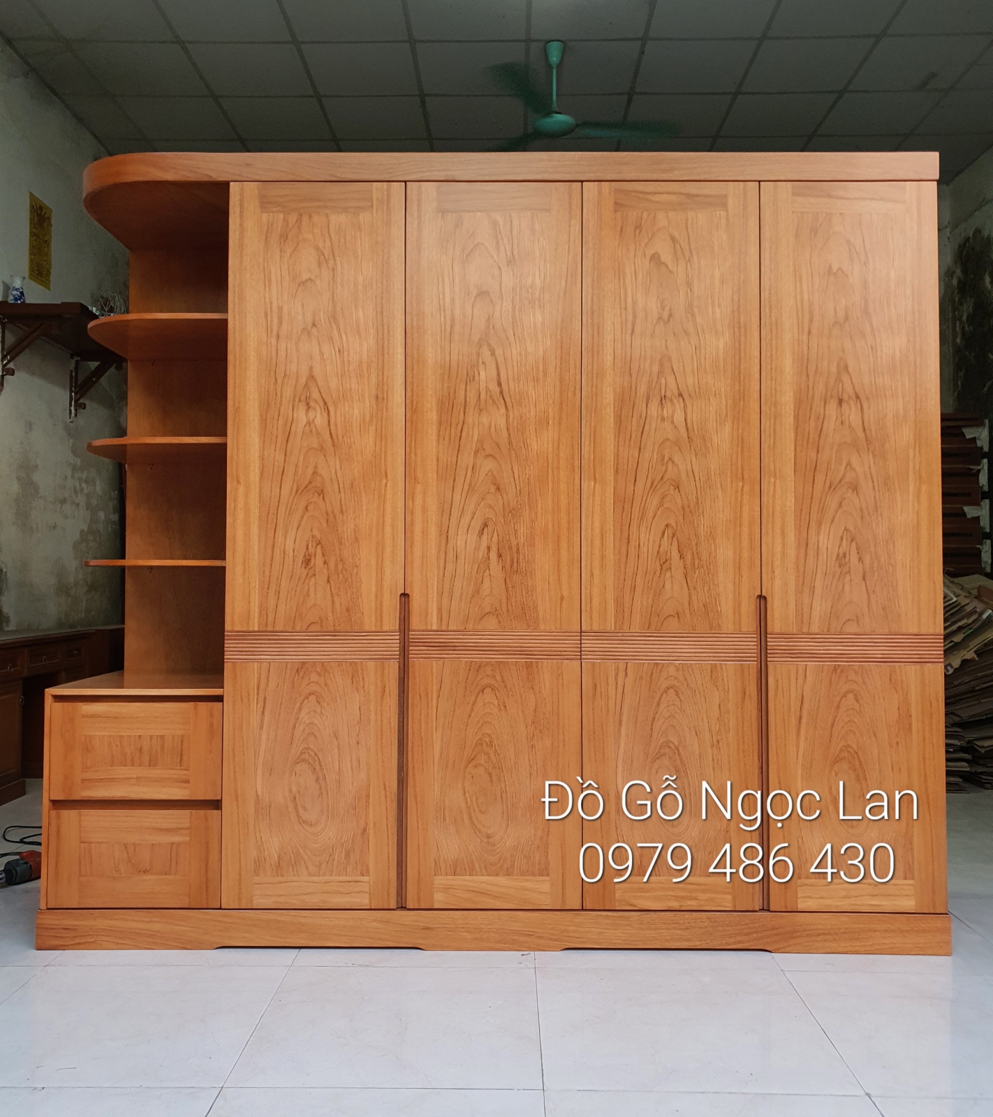 Tủ áo gỗ gõ đỏ 4 cánh kèm góc trang trí - tủ quần áo gỗ tự nhiên tại Đồ Gỗ Ngọc Lan