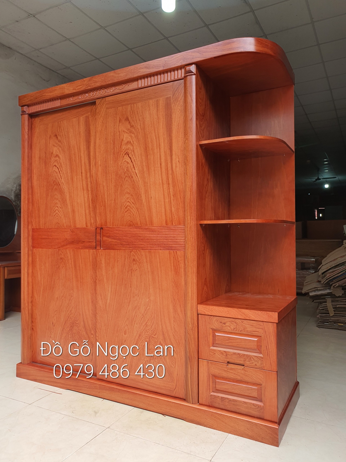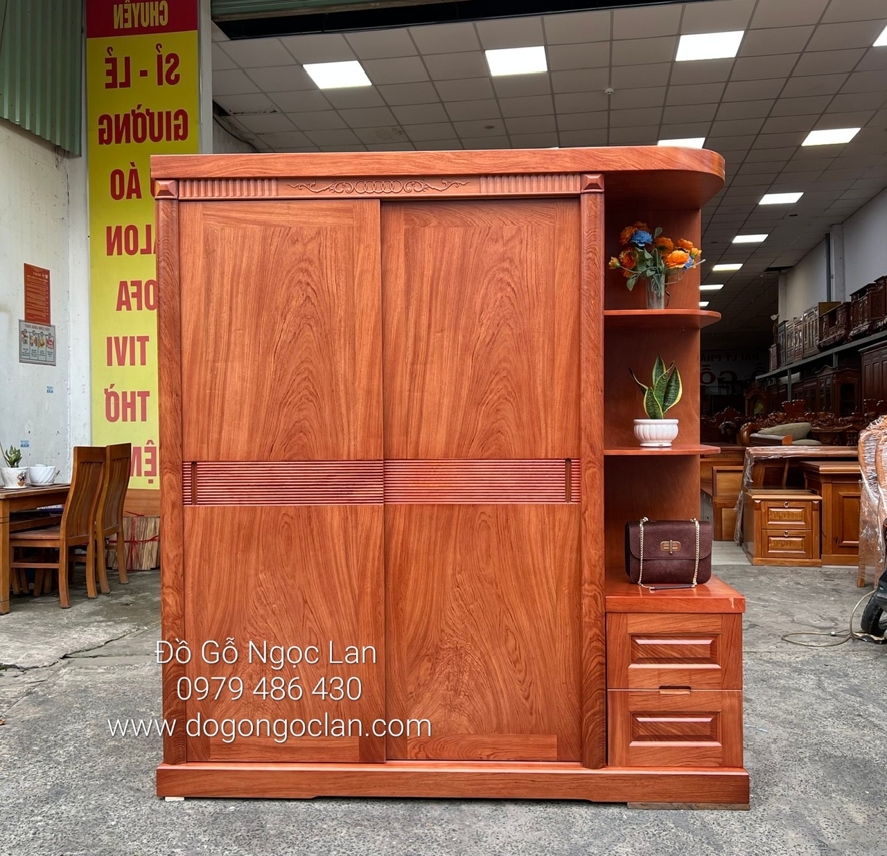 Tủ Quần Áo Gỗ Hương Đá 1M9 Cửa Lùa Kèm Góc Trang Trí - Hiện Đại