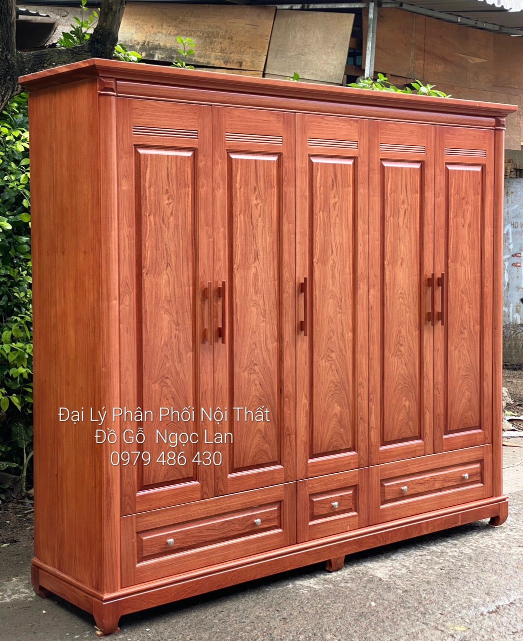 Tủ Quần Áo Gỗ Hương Đá 5 Cánh Trơn Hiện Đại TA 084