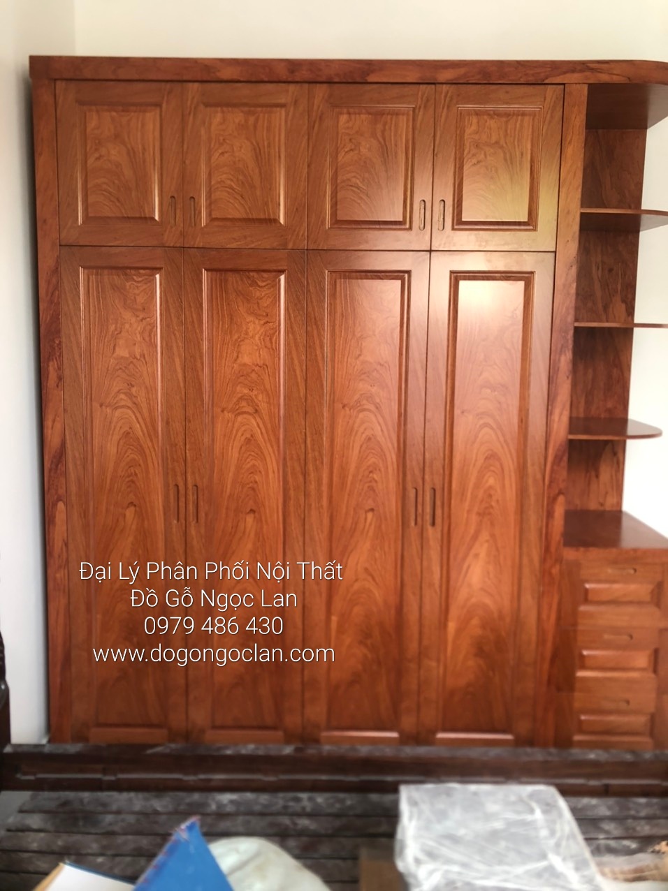 Tủ Quần Áo Gỗ Hương Đá Hàng Đặt Theo Kích Thước 4 Cánh 2 Tầng Kèm Góc Trang Trí