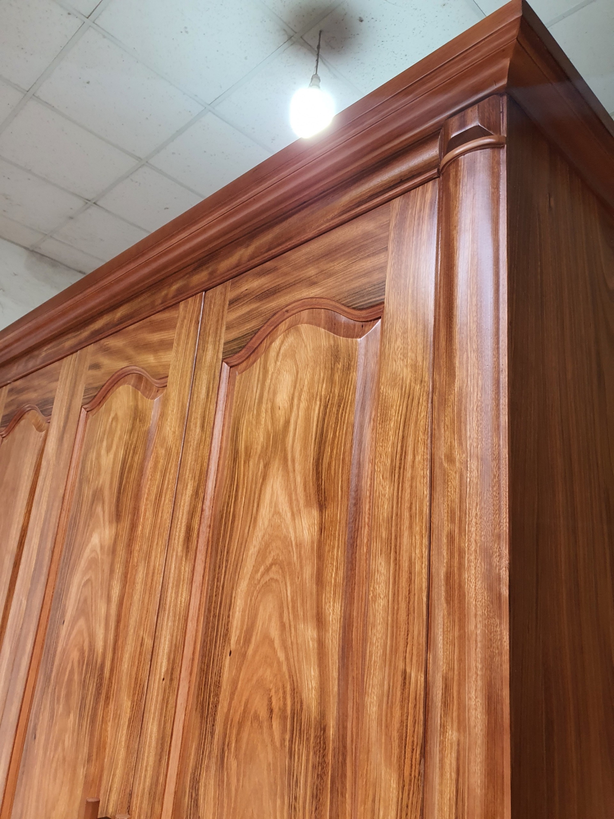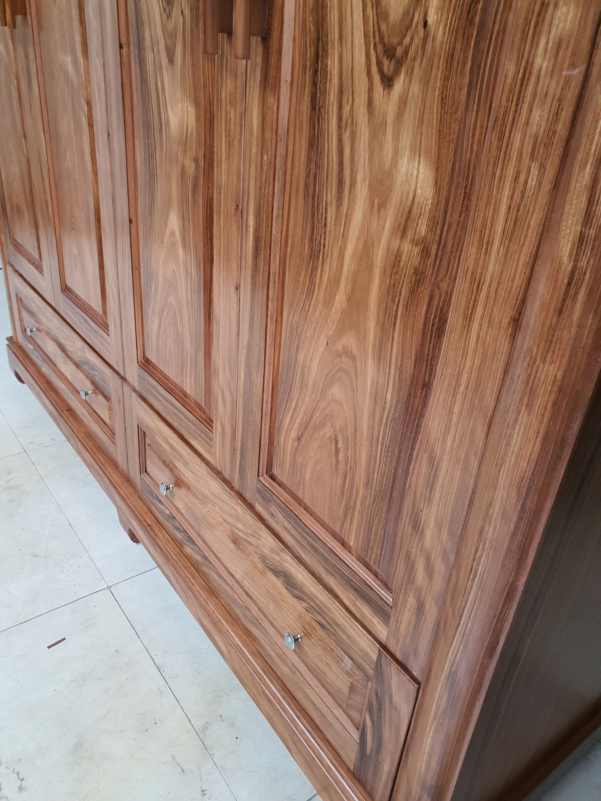 Tủ áo gỗ hương xám cao cấp được chế tác từ nguyên liệu gỗ hương xám tự nhiên ,các bộ phận chính như đỉnh tủ ,cánh tủ ,khung tủ và chân tủ được chúng tôi đặc biệt lựa những khối gỗ nguyên bản không chắp ghép để gia công nên ,nhằm tạo độ chắc chắn tuyệt đối cho tủ quần áo gỗ ,giúp tủ quần áo gỗ tự nhiên huyện đan phượng được cố định tốt hơn và có khả năng chịu lực nặng và những va đập từ bên ngoài trong quá trình vận chuyển
