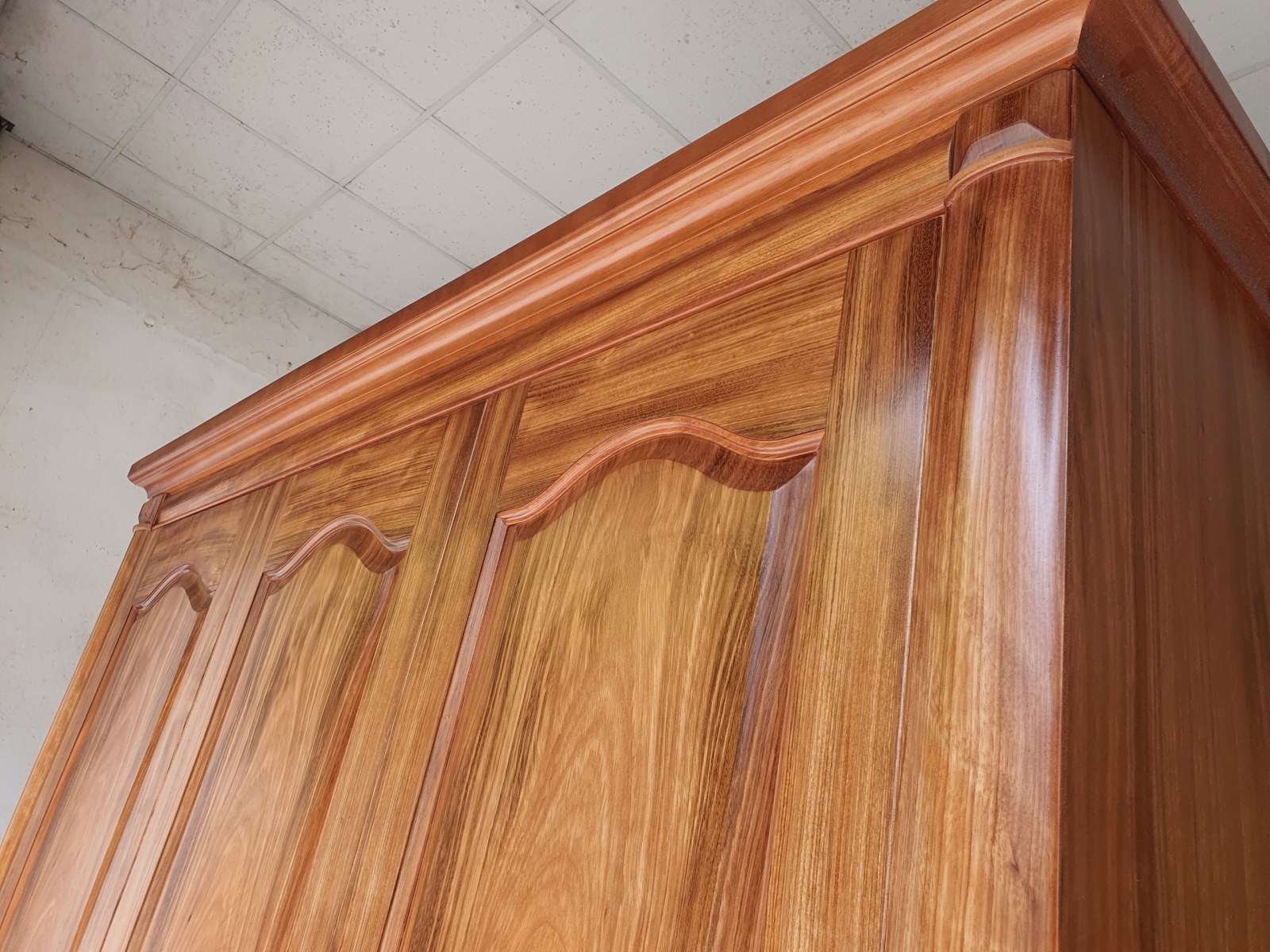 Tủ quần áo gỗ hương xám 4 cánh mẫu đai vòm - hiện đại