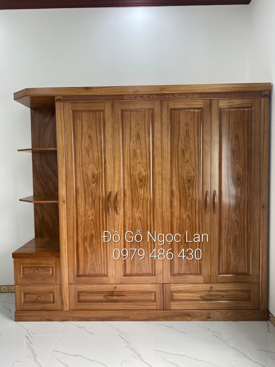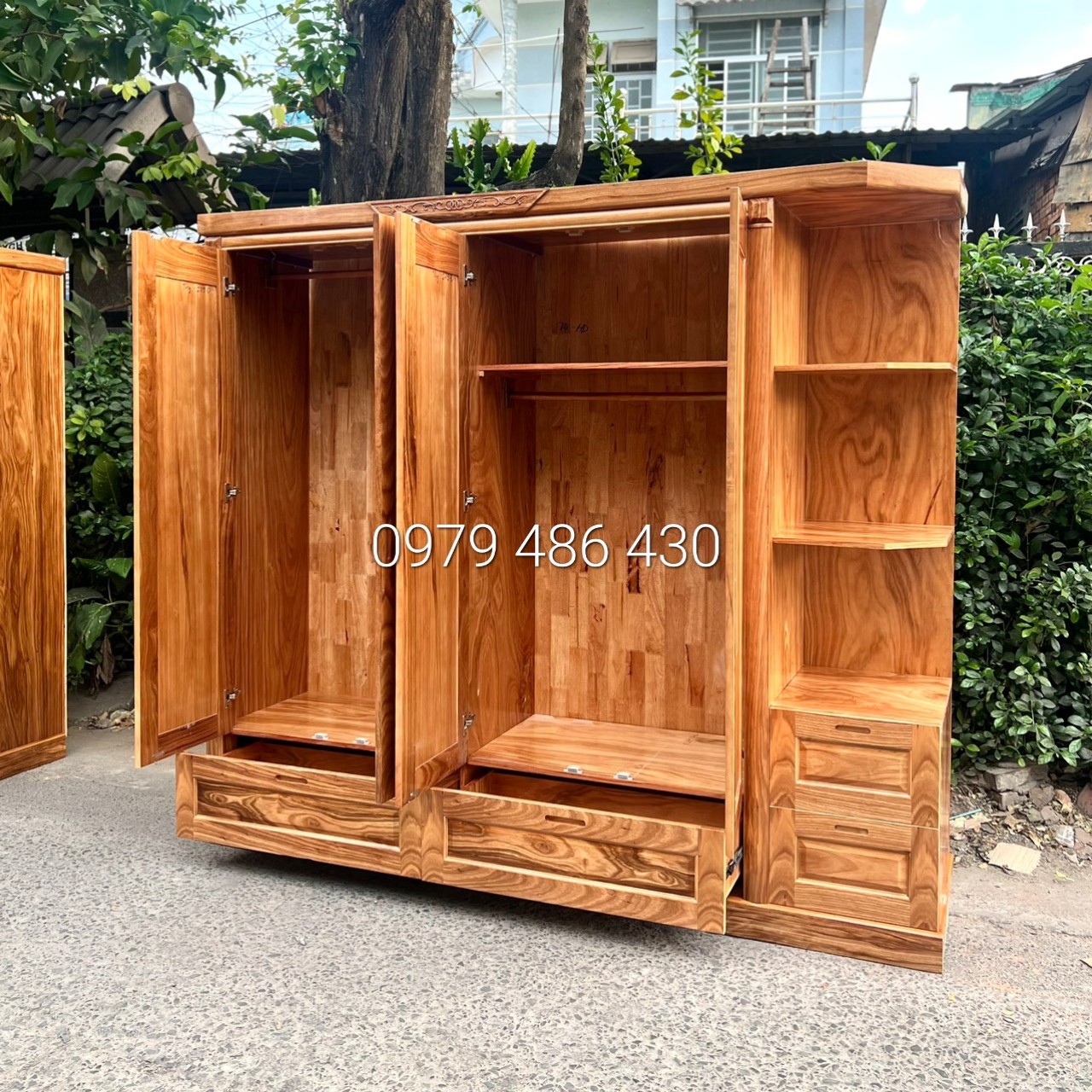 Tủ quần áo gỗ hương xám 4 cánh kèm kệ trang trí T HX 780