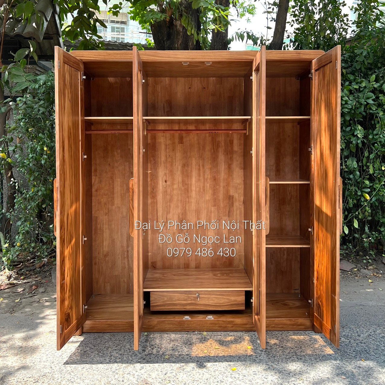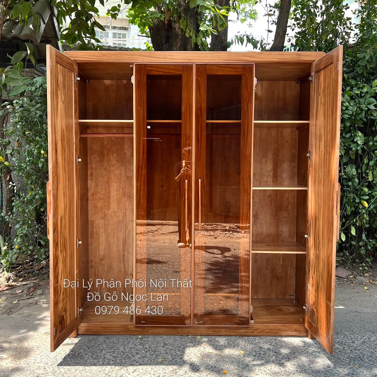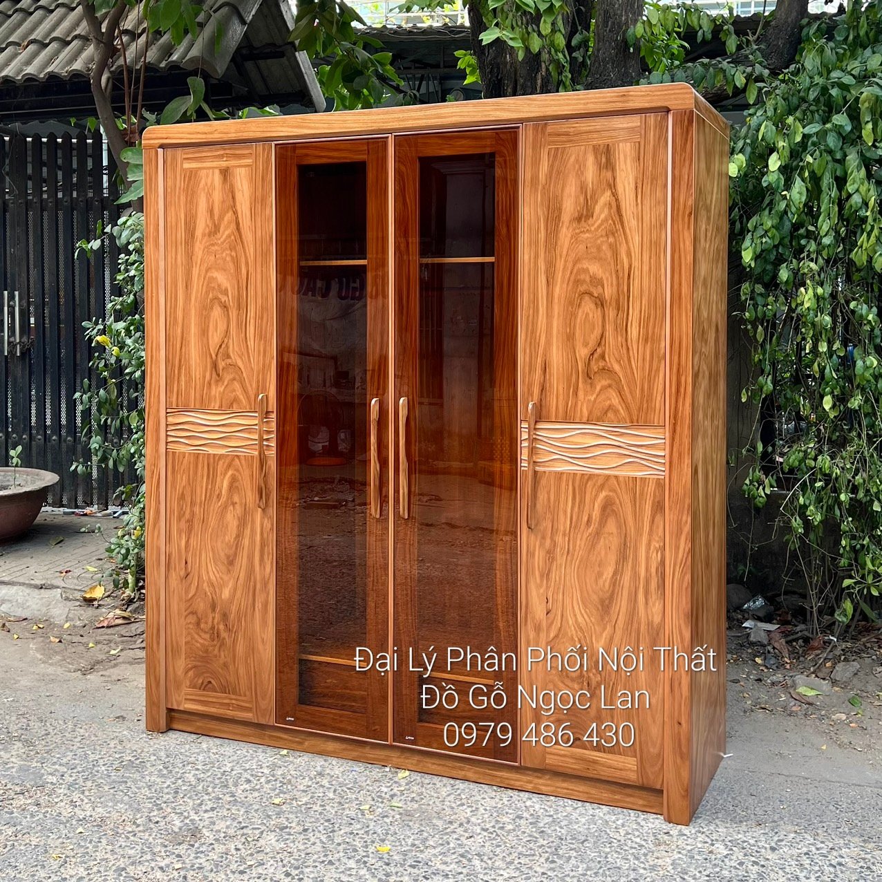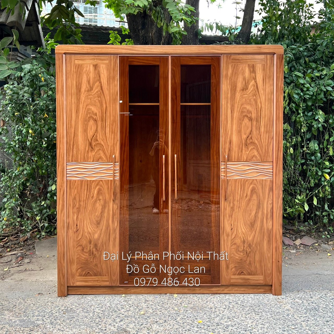 Tủ áo gỗ hương xám 4 cánh hiện đại