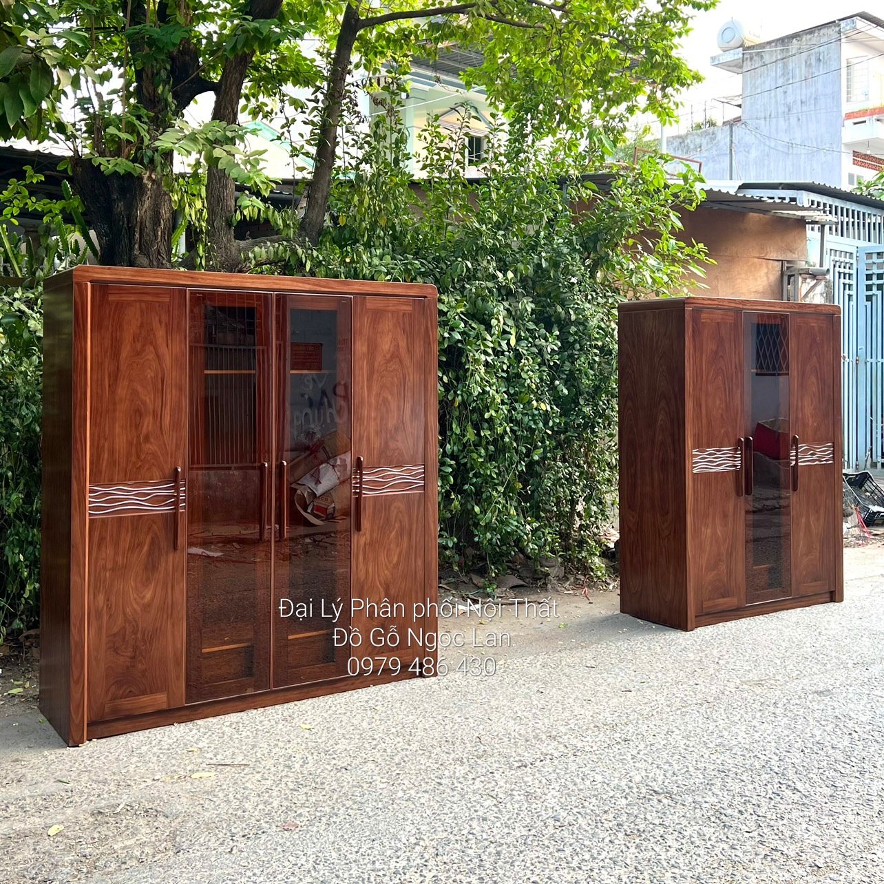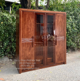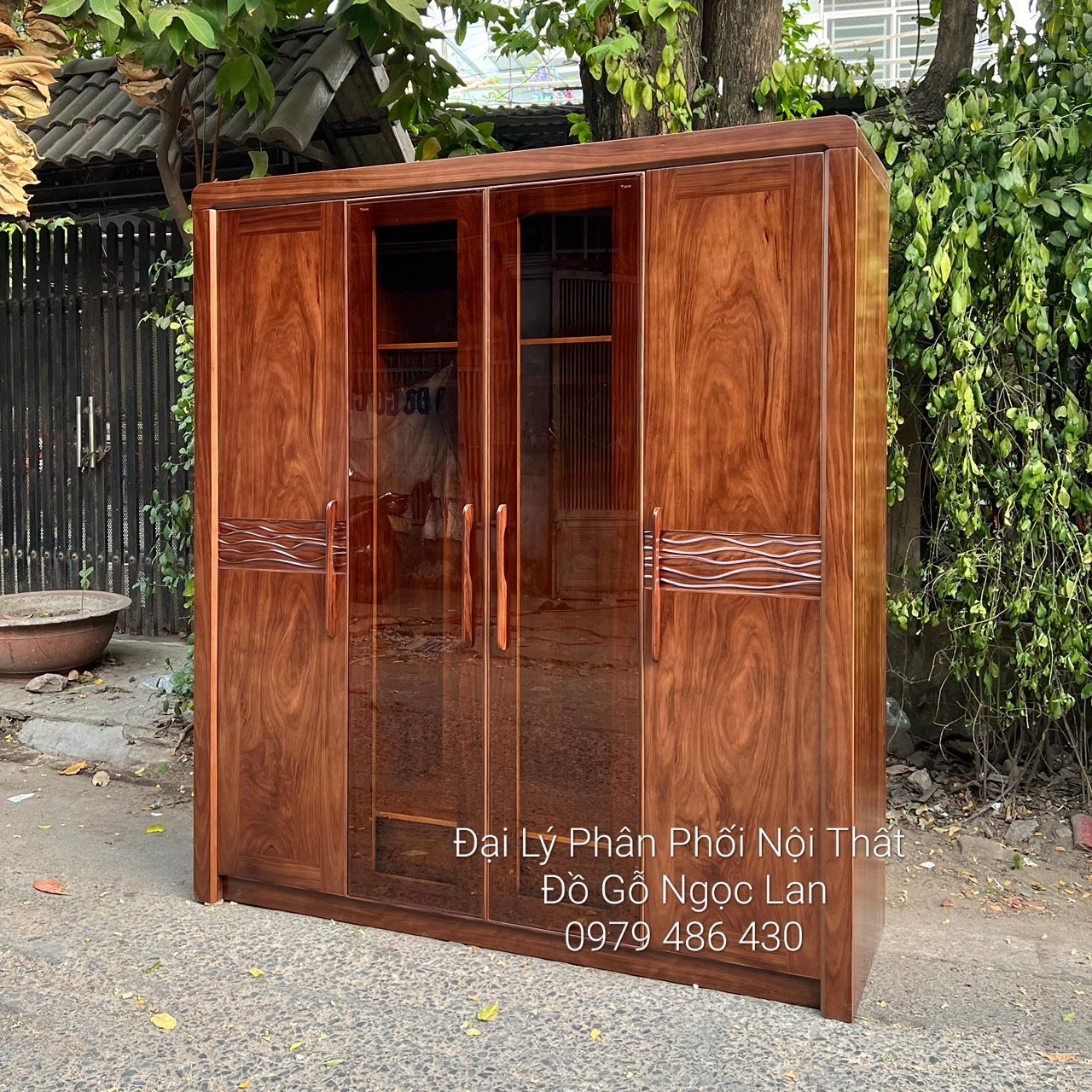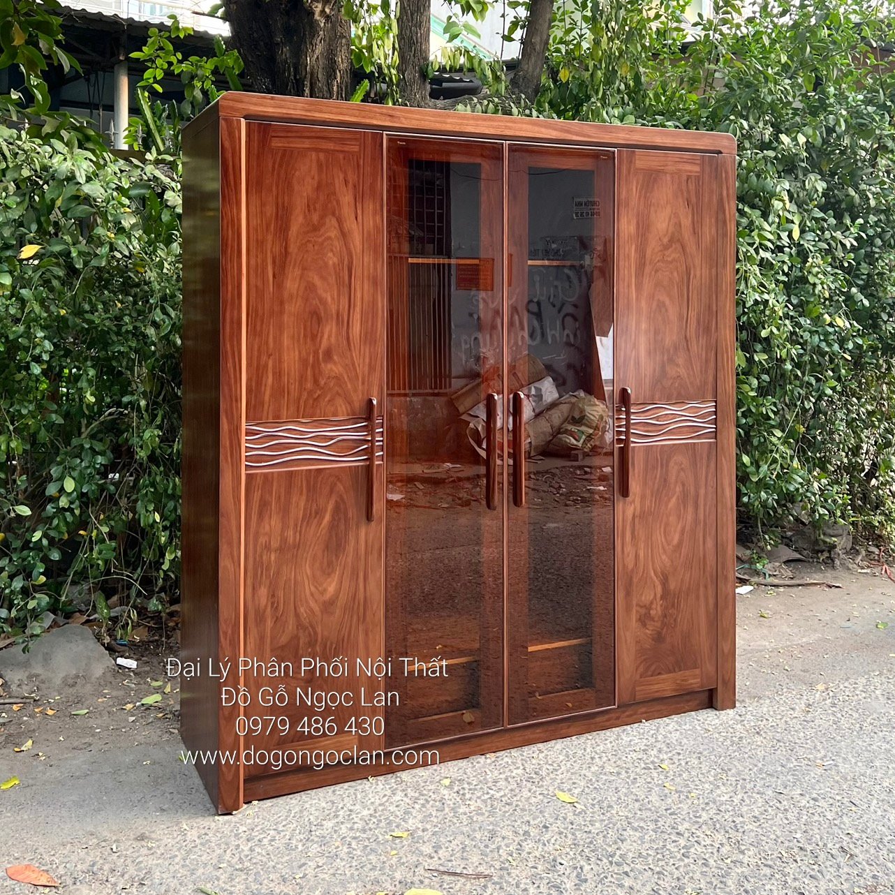 Tủ áo gỗ hương xám 4 cánh kính cường lực