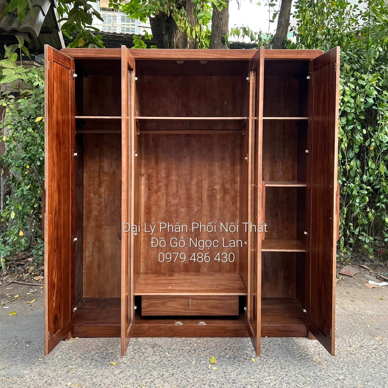 Tủ áo gỗ hương xám 4 cánh 3 buồng hiện đại