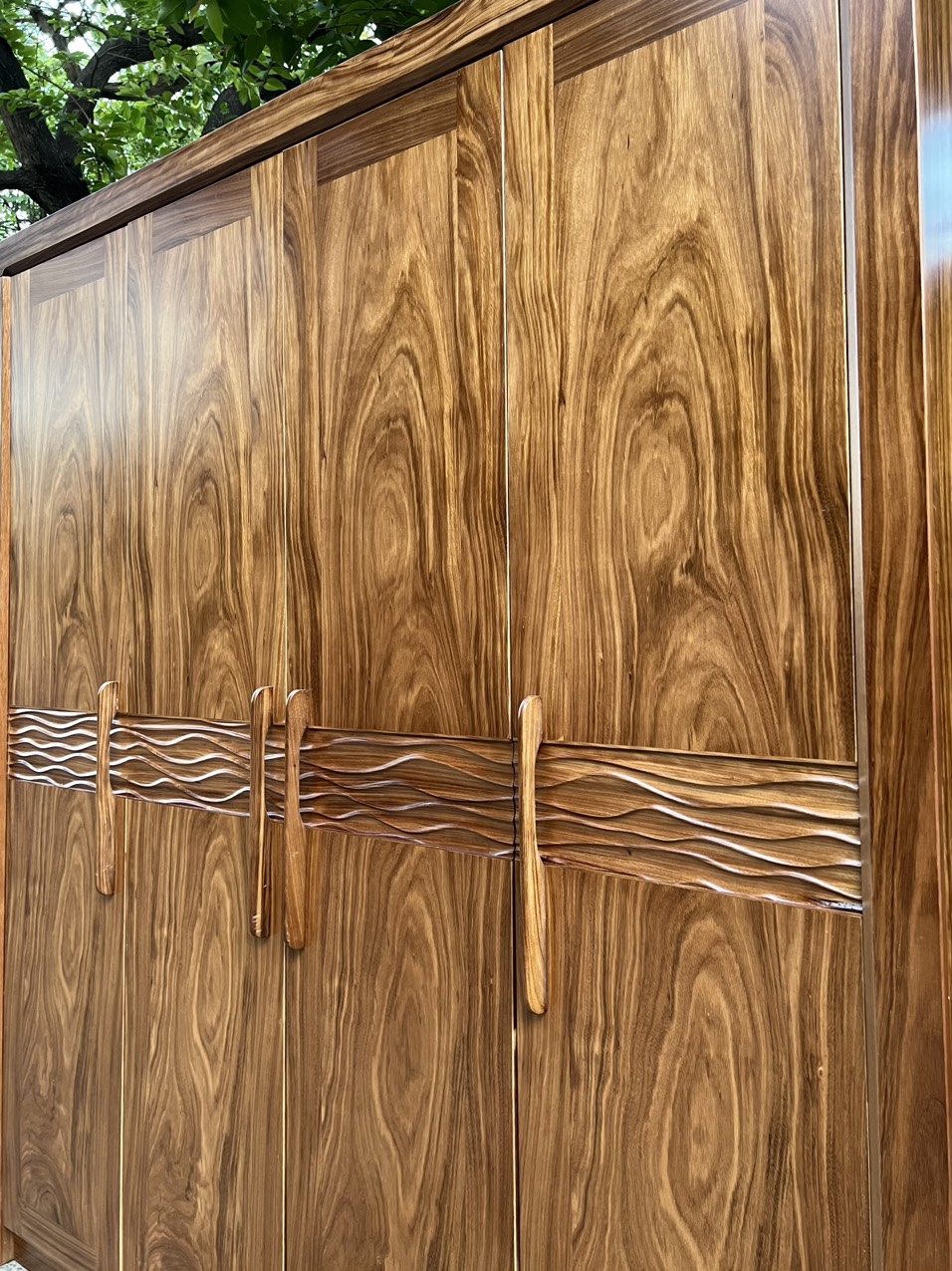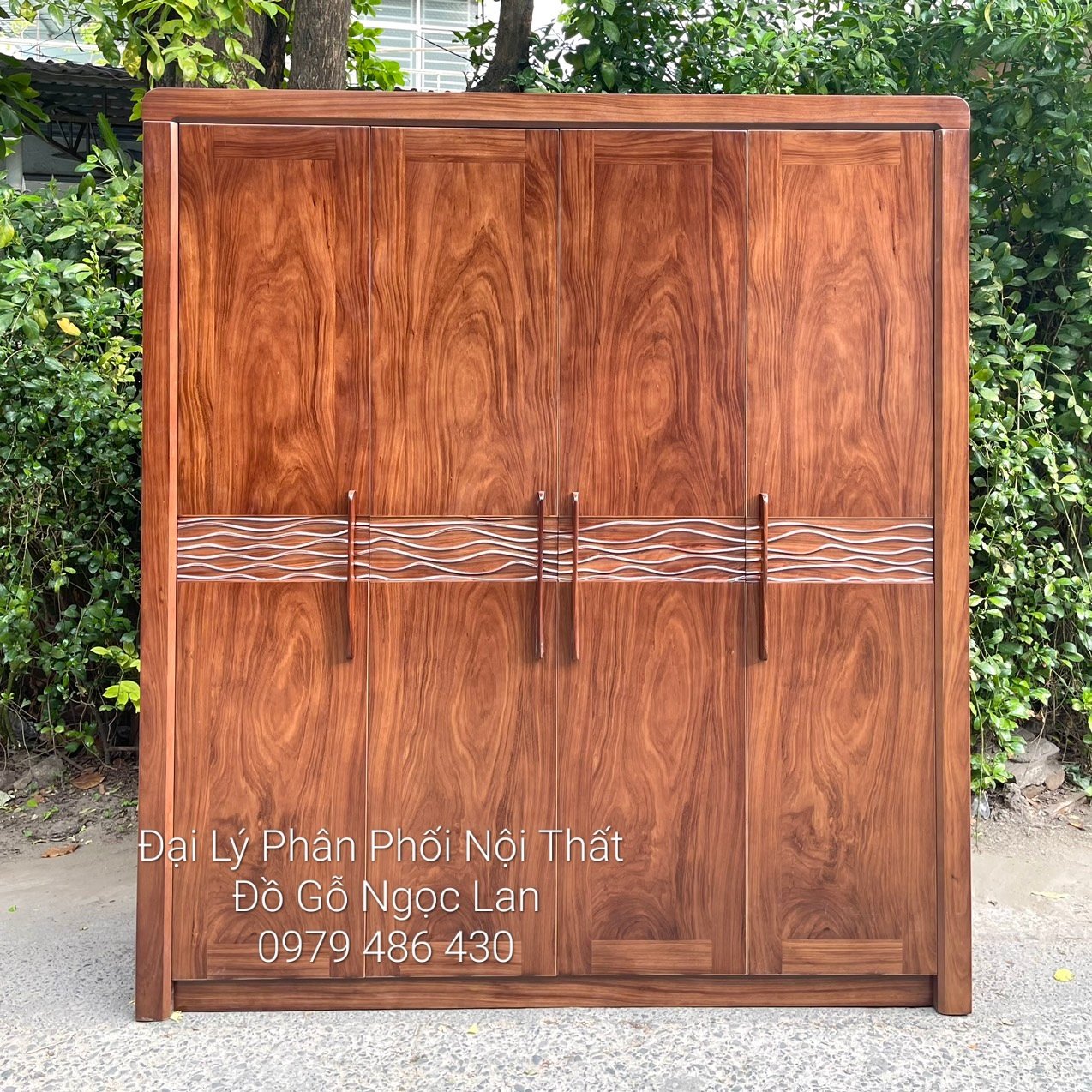 Kích thước tủ áo gỗ hương xám 4 cánh sóng hiện đại