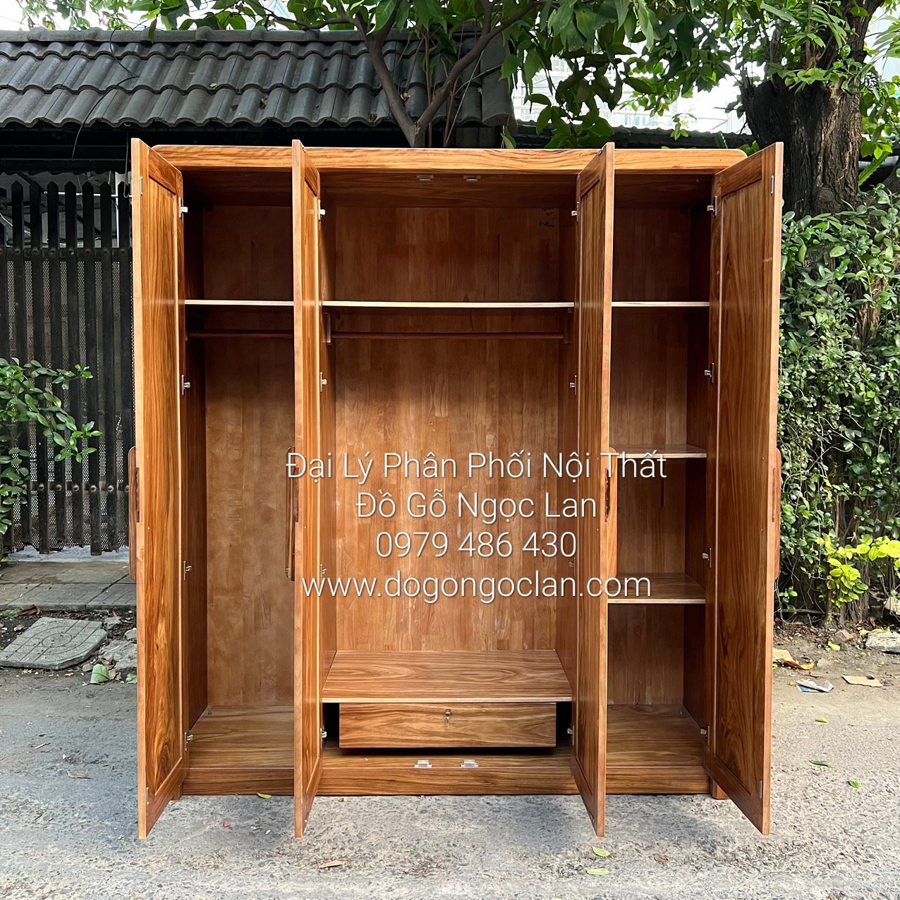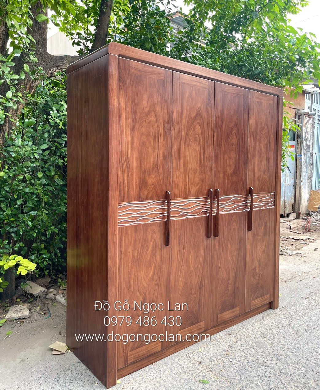 Thiết kế hiện đại ,sang trọng tủ áo gỗ hương xám 4 cánh mở