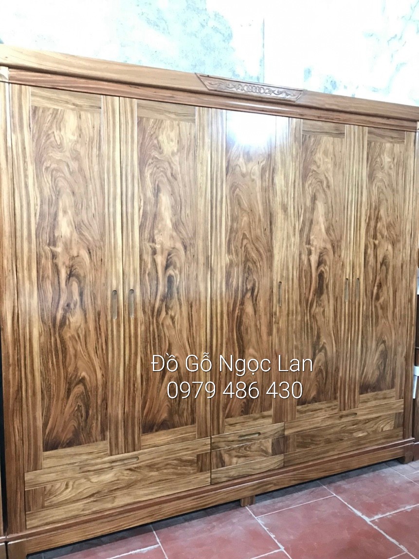 Tủ quần áo gỗ hương xám 5 cánh mẫu chơn - hiện đại