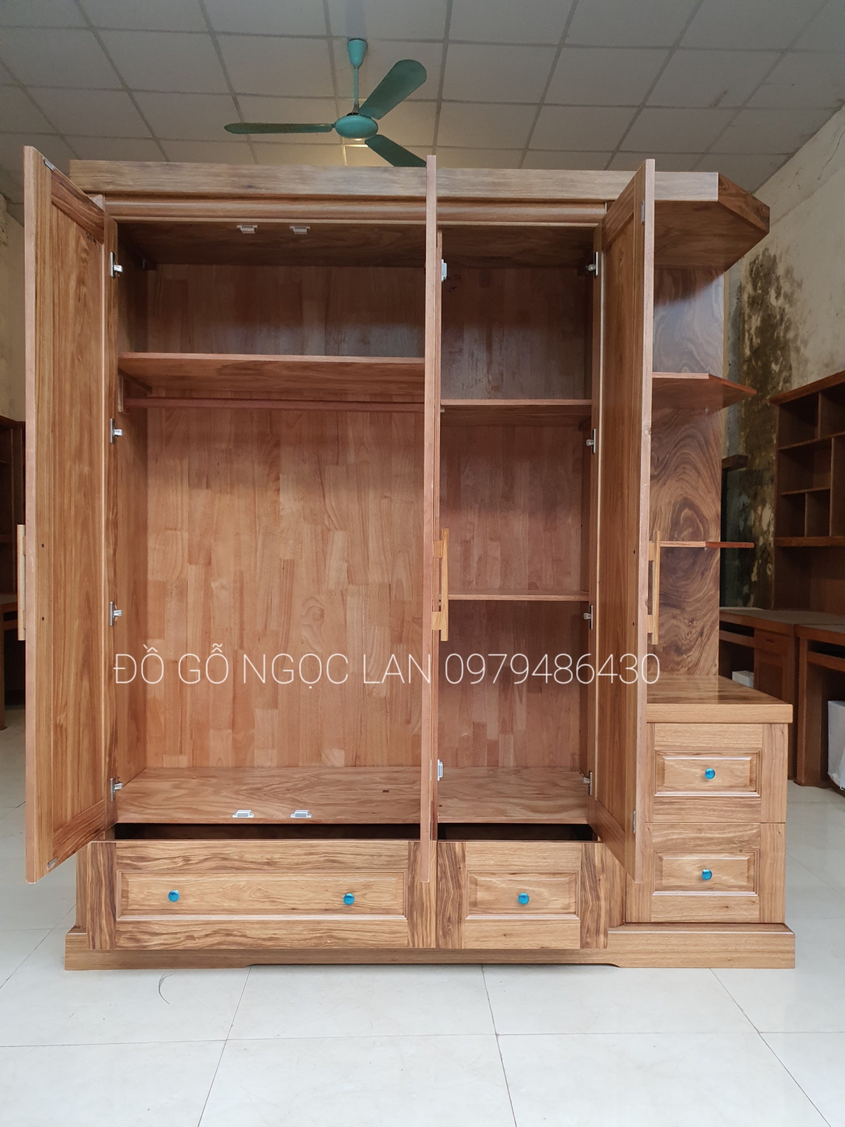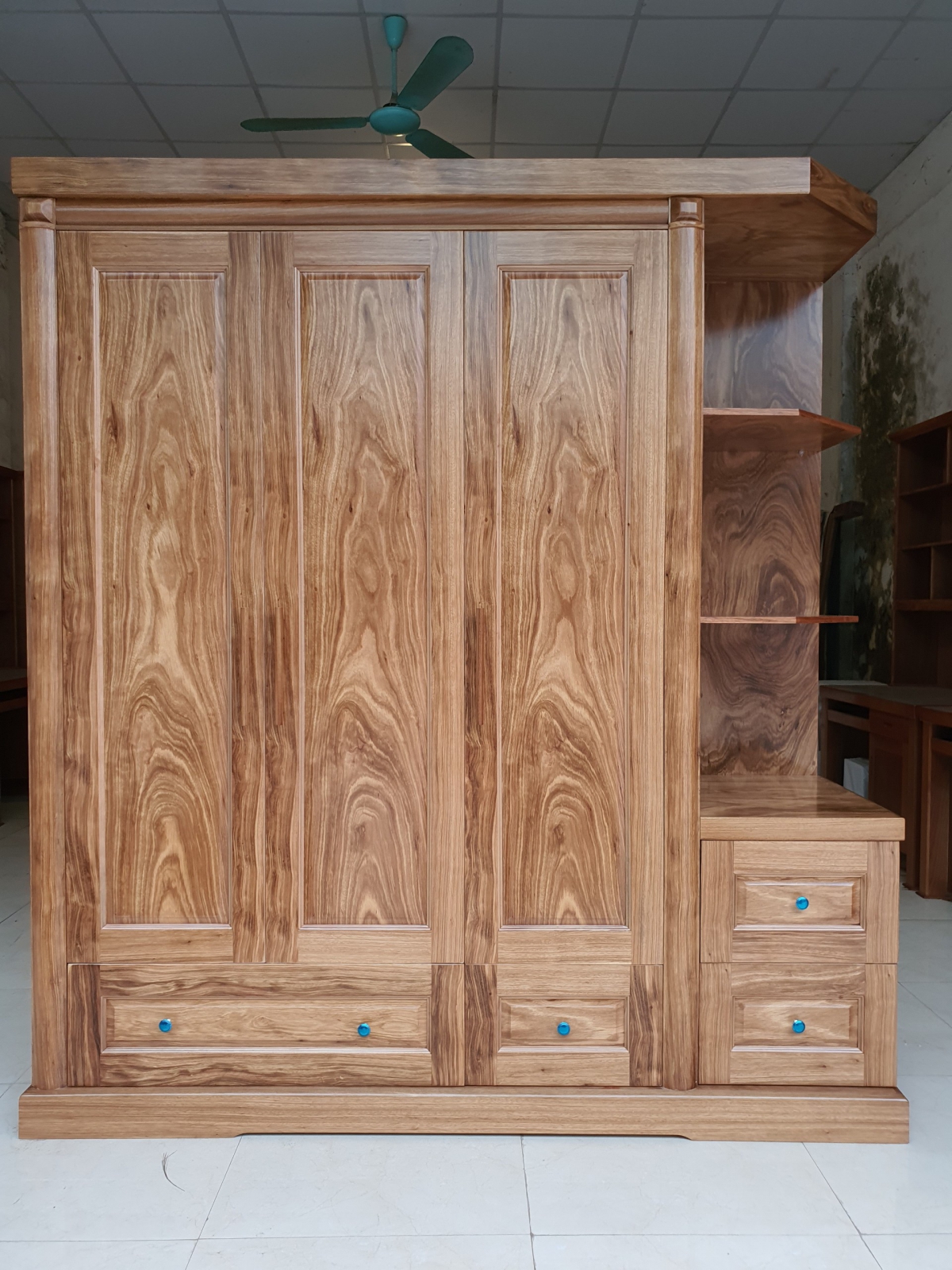 Tủ quần áo gỗ hương xám 3 cánh kèm kệ trang trí