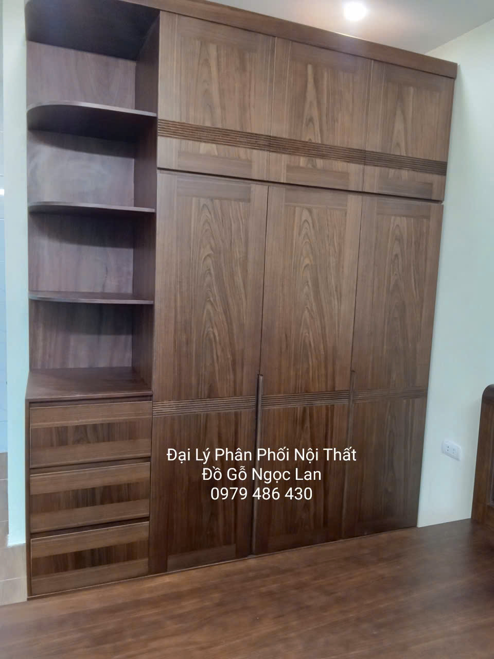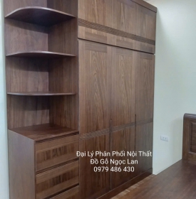 Tủ Quần Áo Gỗ Mun 3 Cánh Kèm Kệ Trang Trí Vế Trái Cao 2 Tầng - Hiện Đại