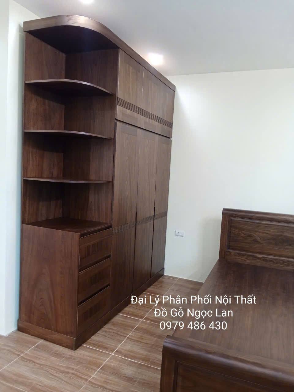 Kích thước tủ áo gỗ mun 3 cánh màu óc chó cao 2 tầng