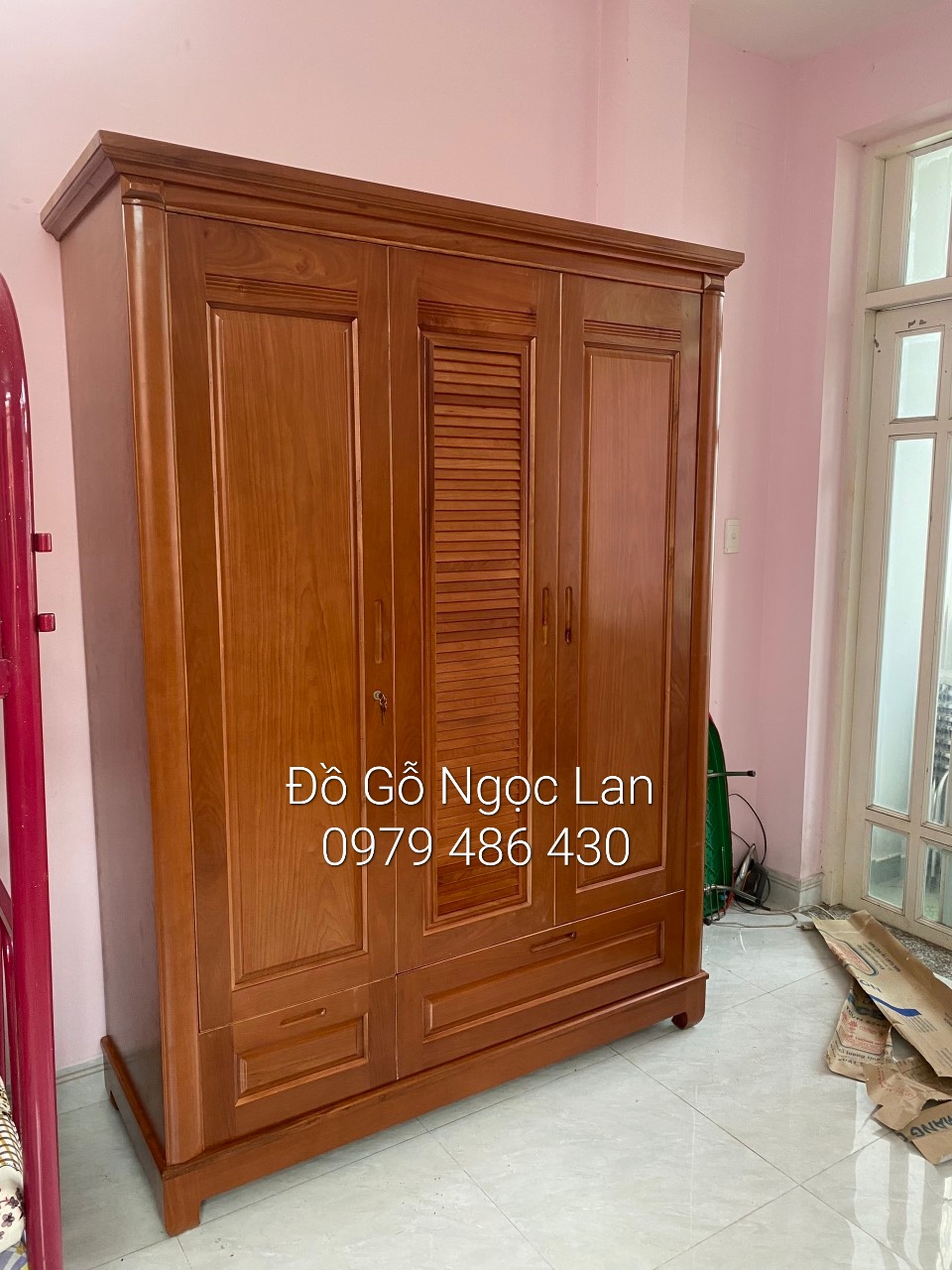 Tủ quần áo gỗ xoan đào 3 cánh hiện đại