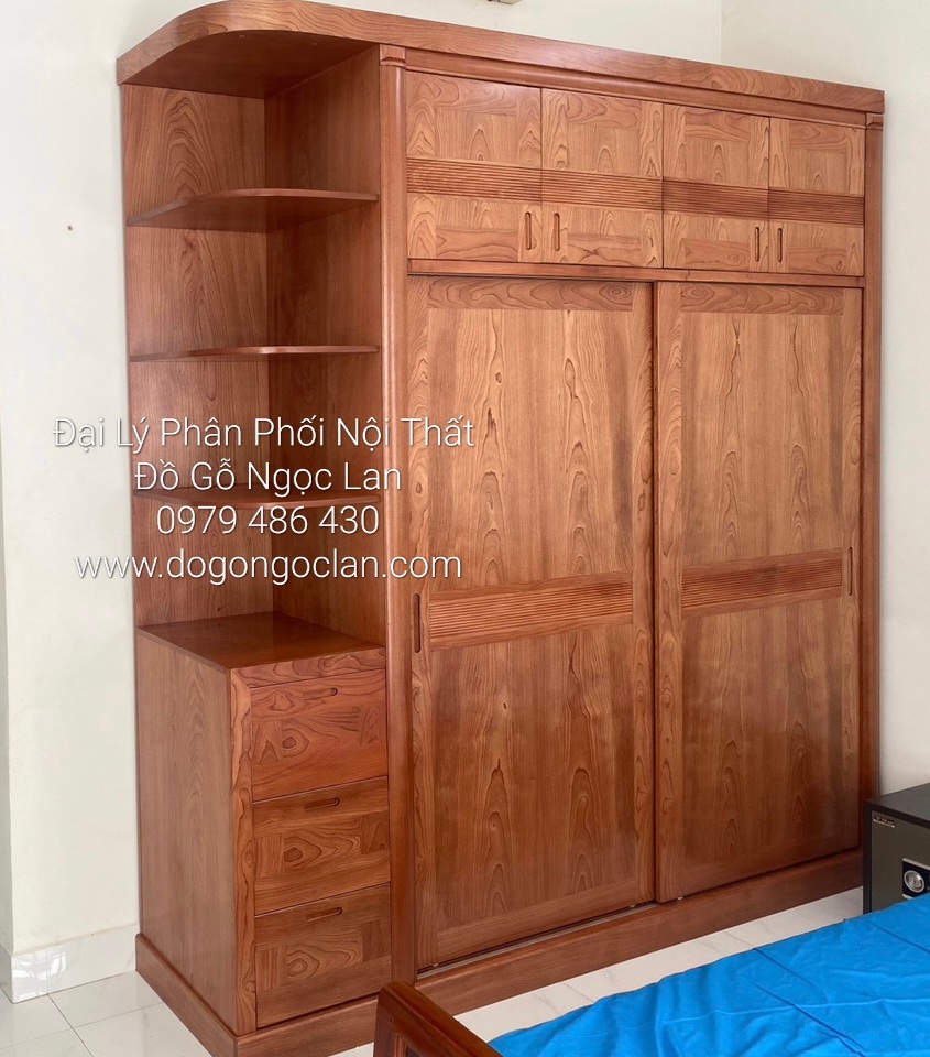 Tủ áo gỗ xoan đào cửa lùa giao khách