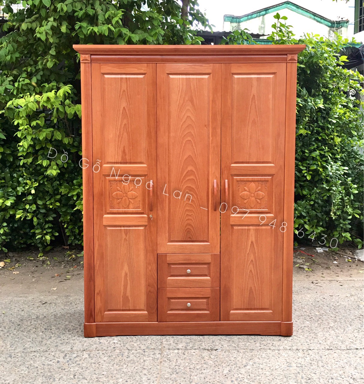 Tủ áo gỗ xoan đào 3 cánh hiện đại - mẫu hoa thị