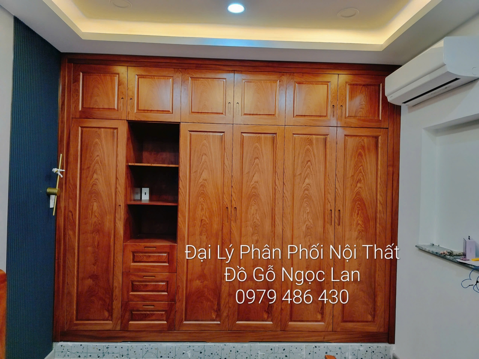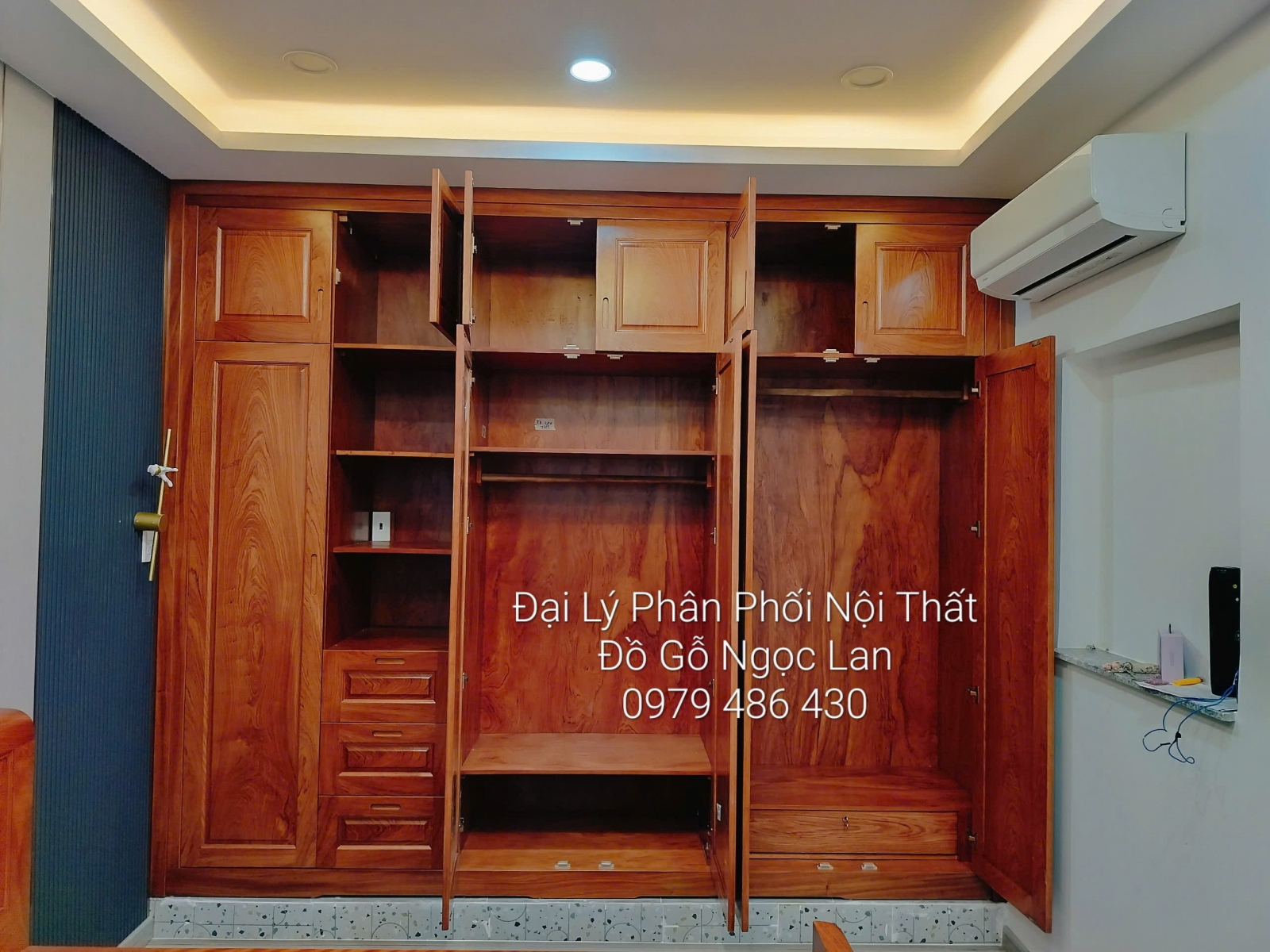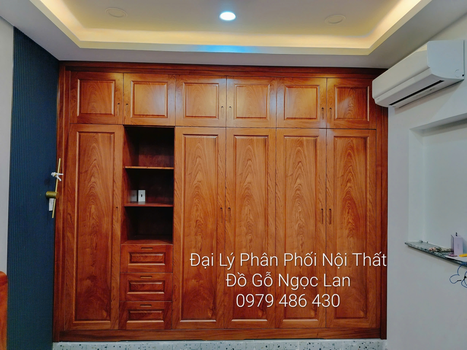 Tủ Quần Áo Hàng Đặt Theo Thiết Kế Yêu Cầu 6 Cánh Cao 2 Tầng Gỗ Hương Đá