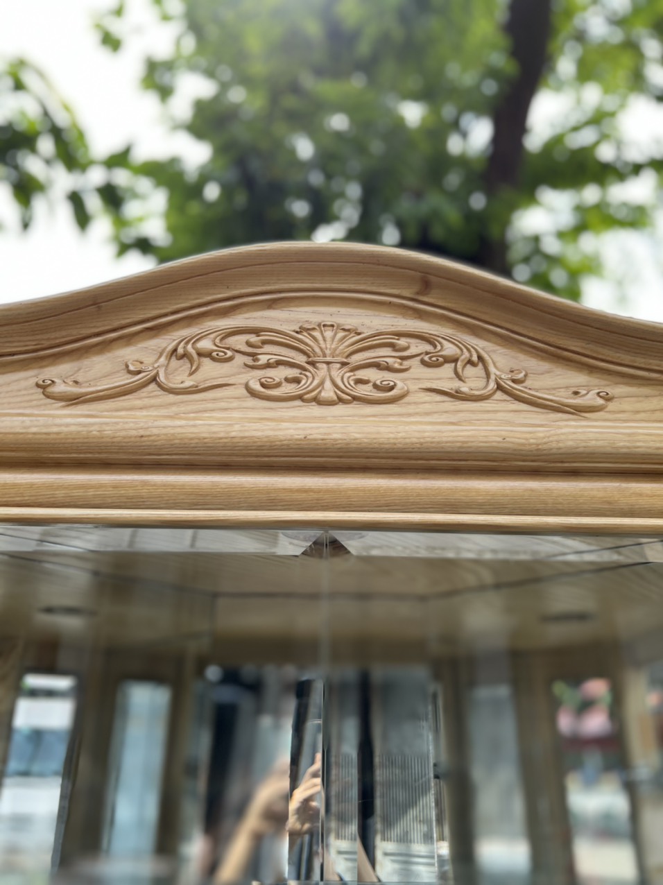 Tủ rượu gỗ sồi nga mang nét hài hòa giữa phong cách trẻ trung hiện đại đan xen với cổ điển châu âu vô cùng độc đáo , những họa tiết trang trí đuọc trạm khắc sắc nét được trải dài trên đỉnh tủ rượu gỗ kết hợp với bức tranh phong thủy '' mai - trúc - cúc - sen '' nổi tiếng trong nhân gian được các nghệ nhân thổi hồn và ướm trên các cánh tủ vừa tạo lên sự nhẹ nhàng , vui tươi cho tủ rượu gỗ tự nhiên vừ có ý nghĩa phong thủy tốt mang lại nhiều tài lộc cho gia chủ sở hữu . Chắc hẳn mẫu tủ rượu gỗ sồi nga khiến cho không gian tiếp khách của ngôi nhà thêm phần độc đáo , sang trọng và đẳng cấp hơn rất nhiều .