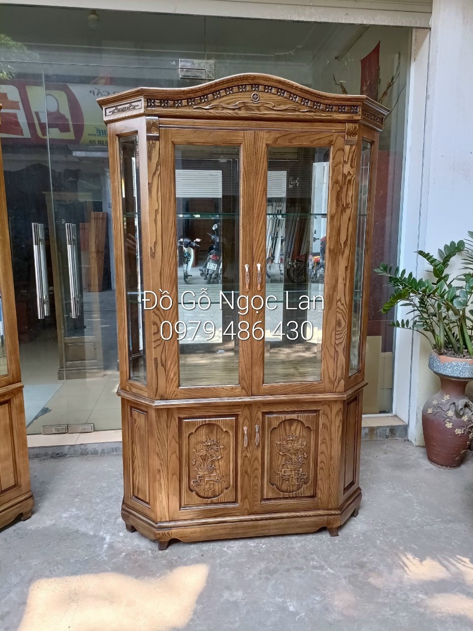 Tủ rượu - tủ ly gỗ sồi nga lau màu óc chó - góc 1m2 TG 08