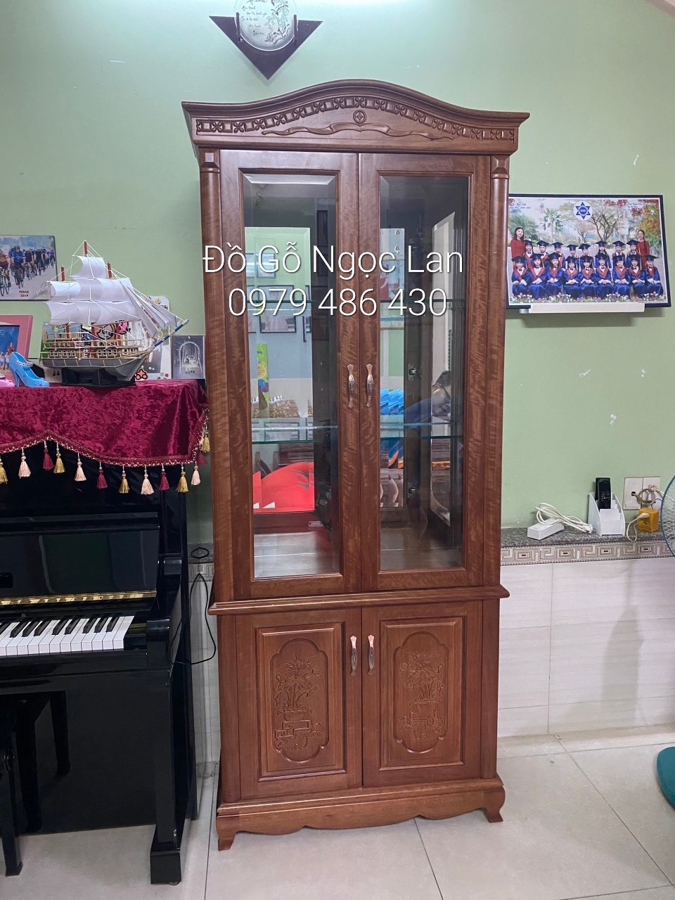 Tủ rượu vuông gỗ xoan đào phào cong - 80cm TG 10